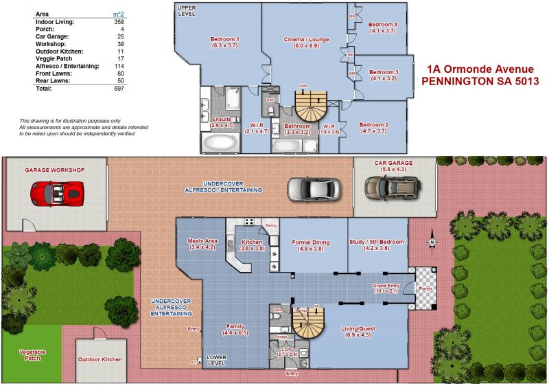 Entertain your family outside and create great memories under the quality Stratco Alfresco complete with outdoor kitchen, massive storage shed and a beautiful low maintenance garden with organic veggie-patch. Also a tandem car garage with enough space for 6 cars all under cover.