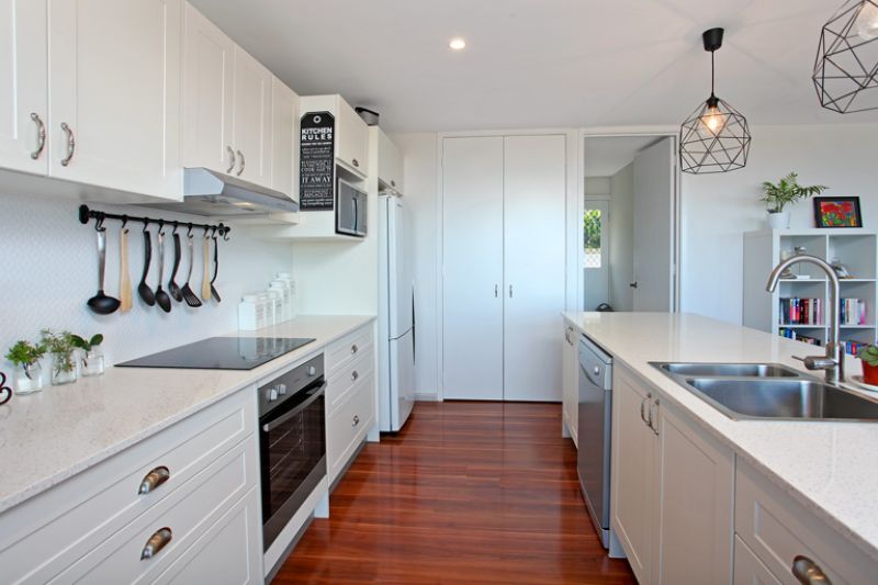 The rear section of the home has a further 3 bedrooms, new bathroom and laundry plus a large family/meals area complete with reverse cycle airconditioning. The elegant new kitchen, with stone benchtops and soft close drawers and doors, overlooks this space. Low maintenance gardens with 2 seperate lawn areas for the kids to play.