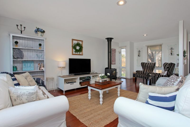 The lounge and dining rooms are also located at the front, boasting timber floors and full length glass doors that showcase the amazing views. The combustion stove makes this the perfect spot in winter, enjoying beautiful sunshine from the NE facing deck. New split system reverse cycle air conditioning has recently been added to this room.