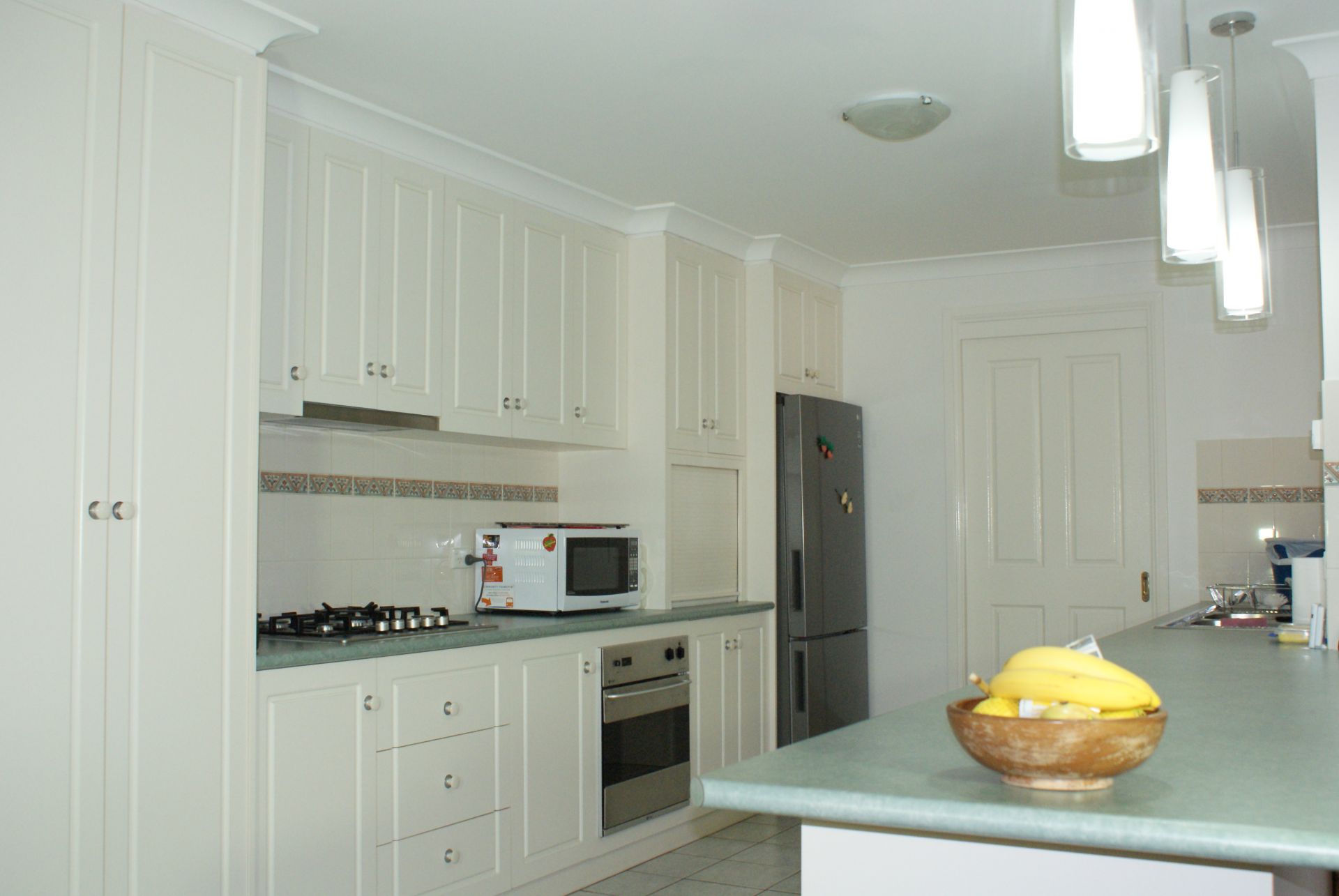 Well appointed gourmet kitchen featuring gas and electric cooking with excellent storage and quality appliances ,opening to a large family room with light coloured ceramic tiles.