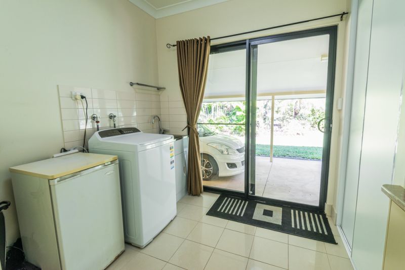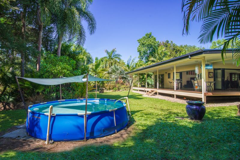 There is a 6 litre per second bore, which is beautiful for drinking. Irrigated garden beds and lawns. A treatment plant for waste water which In turn feeds off to water 3 separate garden beds. The front of the property has established mango trees and a wet season dam complete with island. Cool off in the above ground pool.