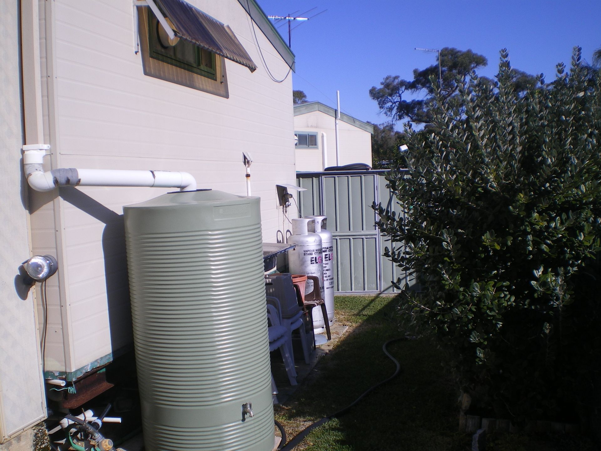 Two 45kl Gas bottles outside, for hot water, and cooking.Scheme water in Kitchen & Bathroom. Outside two Rainwater tanks, one connected via electric pump to sink in Kitchen.