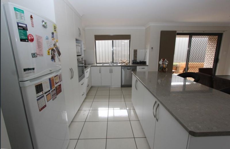 Offering an open plan lounge that opens out onto a patio area, a modern kitchen, island bench, stainless steel appliances, dishwasher, wall oven, ceramic cooktop, loads of kitchen cupboards and bench space, reverse cycle air conditioning in the lounge, fully screened and main bathroom with separate bath and shower.