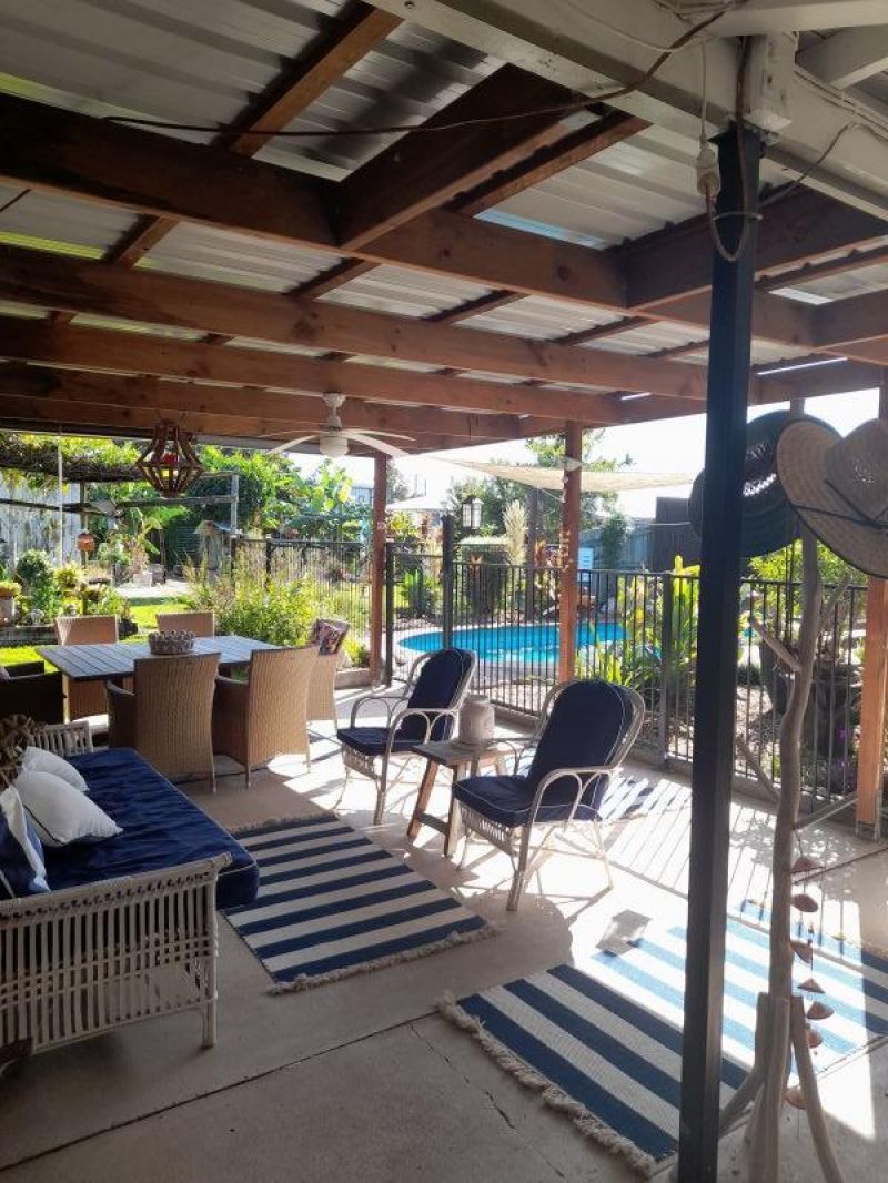 Salt water Pool & Beautiful Easy established Manicured Gardens, 1/4 acre property, 10 metre Entertainment area & a Pool Shack enjoy relaxing so much of the hard work is already done!