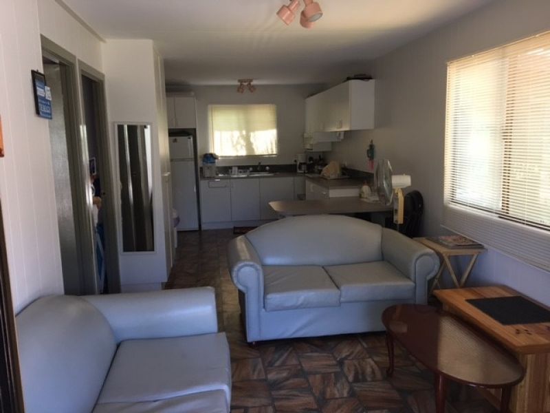 - Kitchen includes: fridge; 2 element electric cook top; small electric oven.