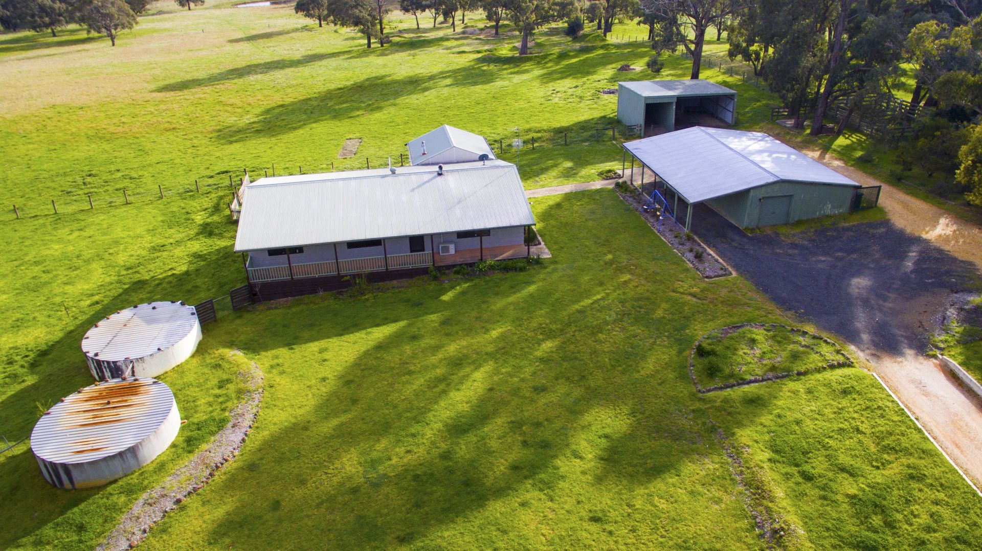The farm has 2 huge water tanks, 2 dams, 2 large garages and a hay shed, fully fenced and suitable for horse agistment or live stock.