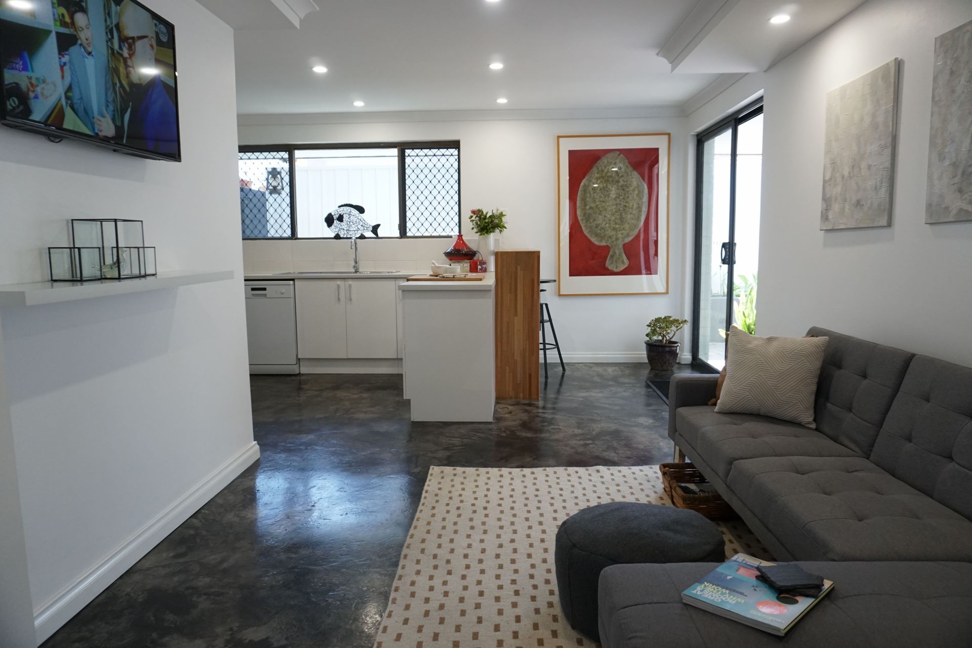 - Easy care, modern, polished look concrete floors