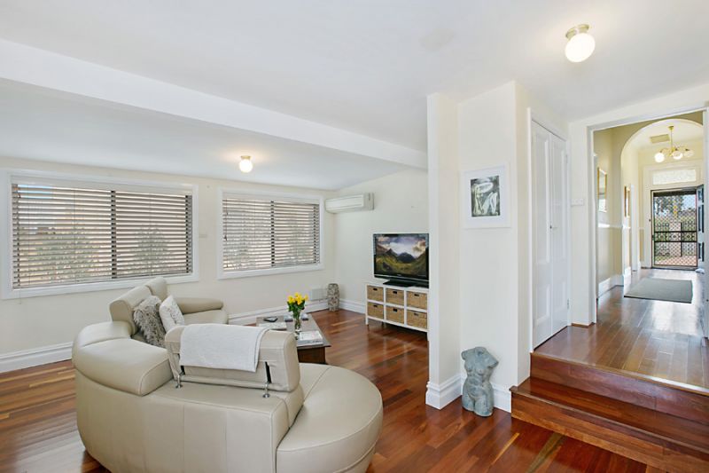 The living room with its timber flooring, reverse cycle air conditioning and French door leading out to the substantial yard captures the summer breezes.