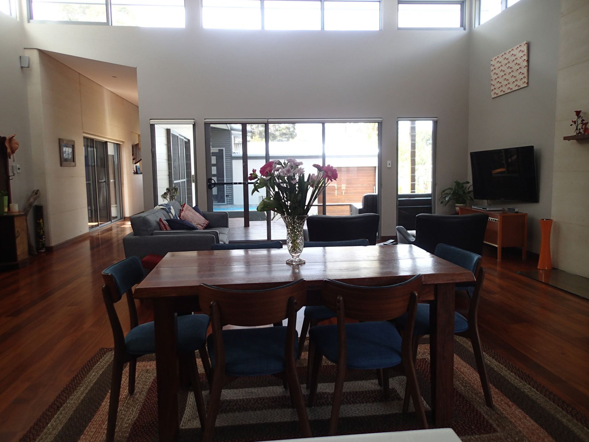 The warmth of the jarrah flooring throughout embraces the natural lighting, which is in abundance with industrial style window fittings. Core rammed earth walls create a thermal blanket keeping it warm in winter and cool in summer.