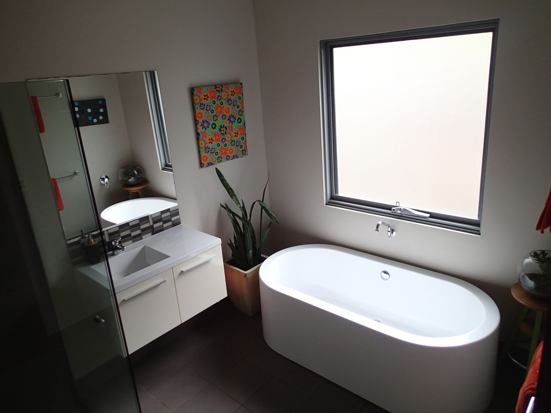 The main bathroom has a stunning freestanding bath to soak away the stress of the day. With natural lighting being a feature of this home, the laundry certainly hasn't missed out. Plenty of light, cupboard space and room make this laundry a pleasure to work in.