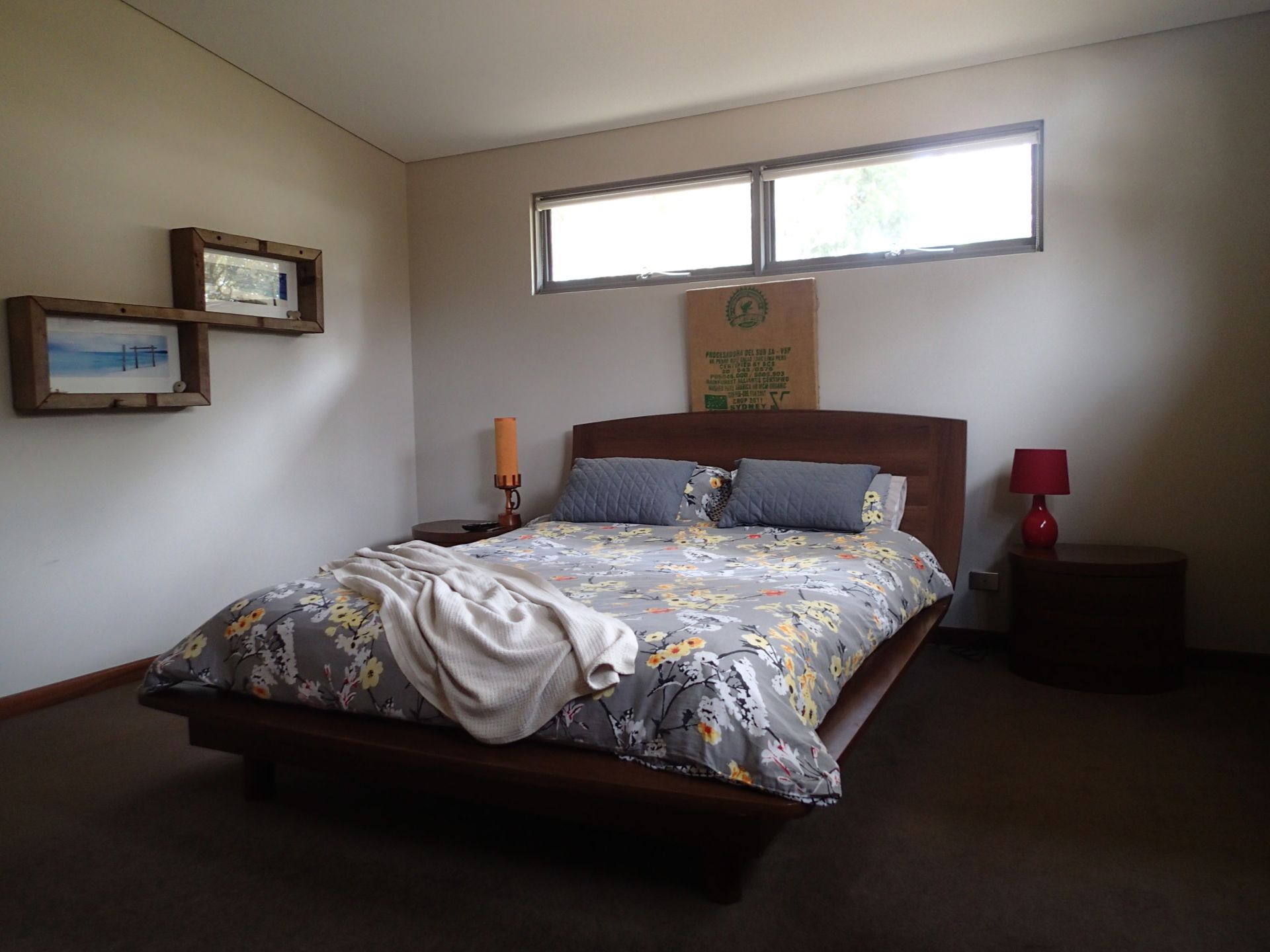 The master bedroom features a rammed earth wall with plenty of windows to filter the warmth and light through. A large walk in wardrobe and ensuite with beautiful louvered windows looking out over the garden allows you to start your day being at one with nature.