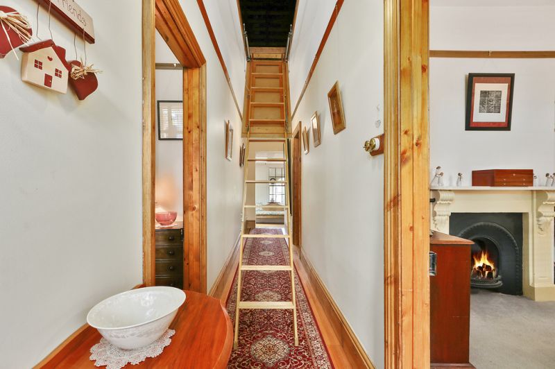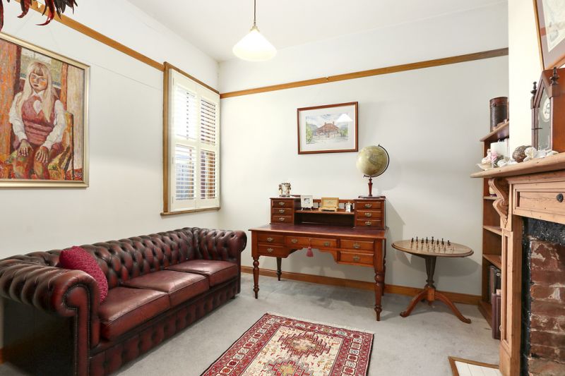 Entry is via the undercover veranda into the hallway running central to the house. At the front, two large double bedrooms both with fireplaces and the third bedroom or study if you prefer, also has a fireplace. The bedrooms and hall all feature classic 9 foot ceilings.