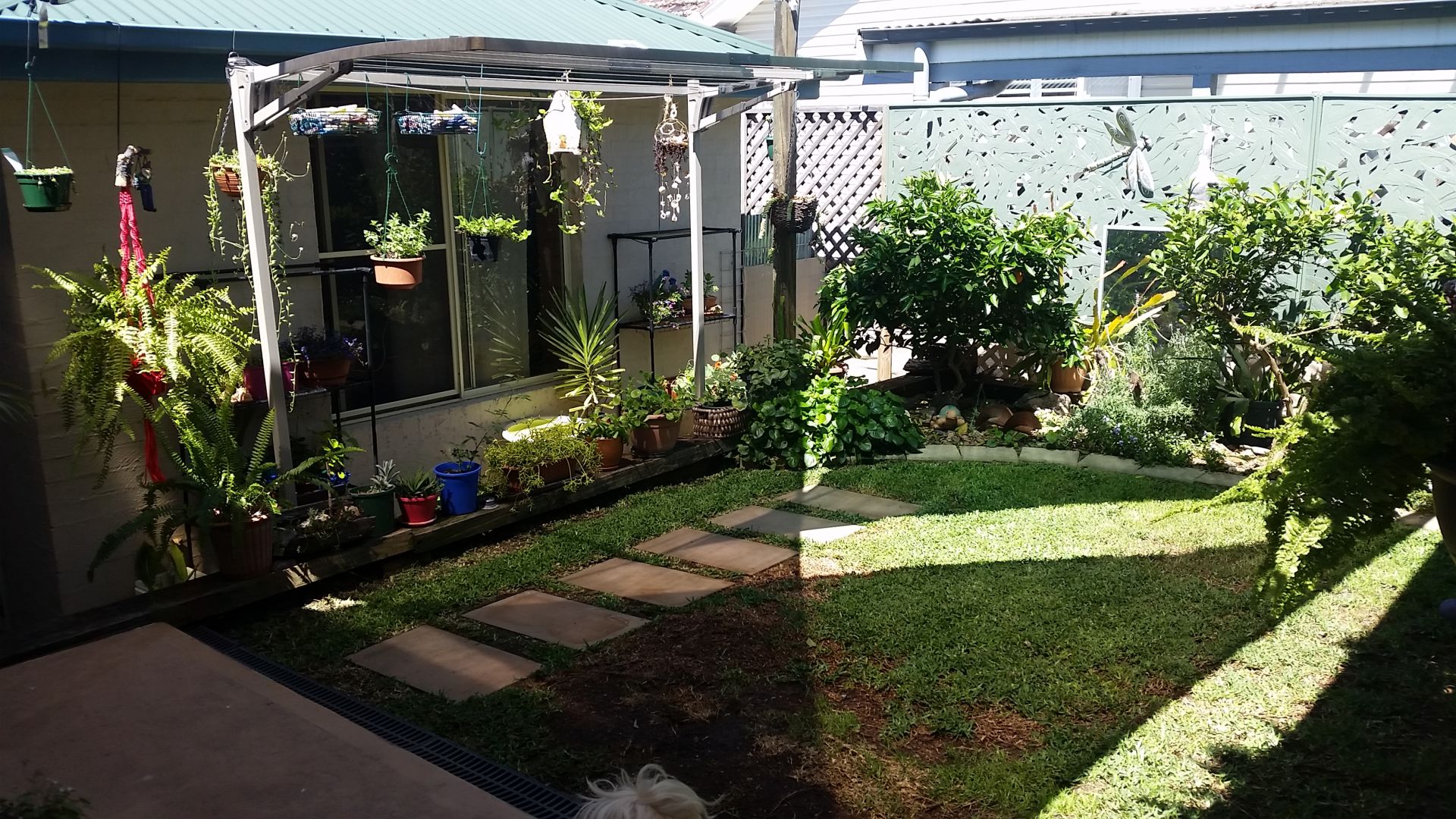 Large drive way with car port and secure garage, Separate garden shed. House roof has been repainted,