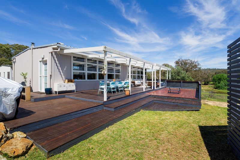 The seperate self contained unit provides open plan living/dining, solid oak kitchen cabinetry, a large bedroom with built in wardrobes and compact bathroom with toilet and shower. Unit has its own outside space with 30 sq metres of decking and beautiful views across the wetlands. Connected to power, sewer, a dedicated 26,000L water tank and fitted with reverse cycle heating/cooling and a large gas heater for cold nights, the self contained unit is perfect for extended family, frequent guests or a place to launch your own work-from-home business. Or let the house pay for itself: with its own entrance and parking area, the unit is perfect for AirBnB stays.