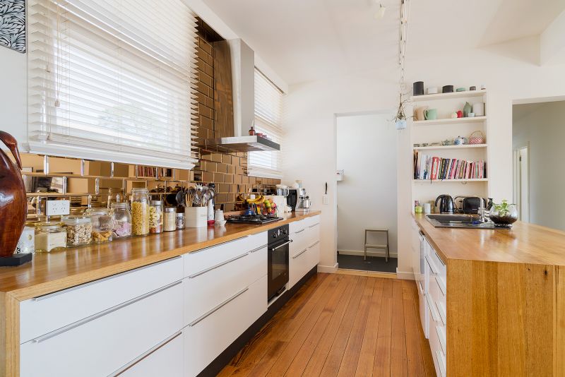 Large ceiling height windows bathe the interior in light and make the most of the views across the wetlands and the beautiful Chewton bush. Solid oak floorboards throughout the open plan living and dining compliment the sleek white cabinetry in the kitchen with oodles of drawer space and a second sink and bench space in the clever butlers pantry and laundry. Large oak benchtop provides ample space for cooking and a place for guests to sit and chat while you work.