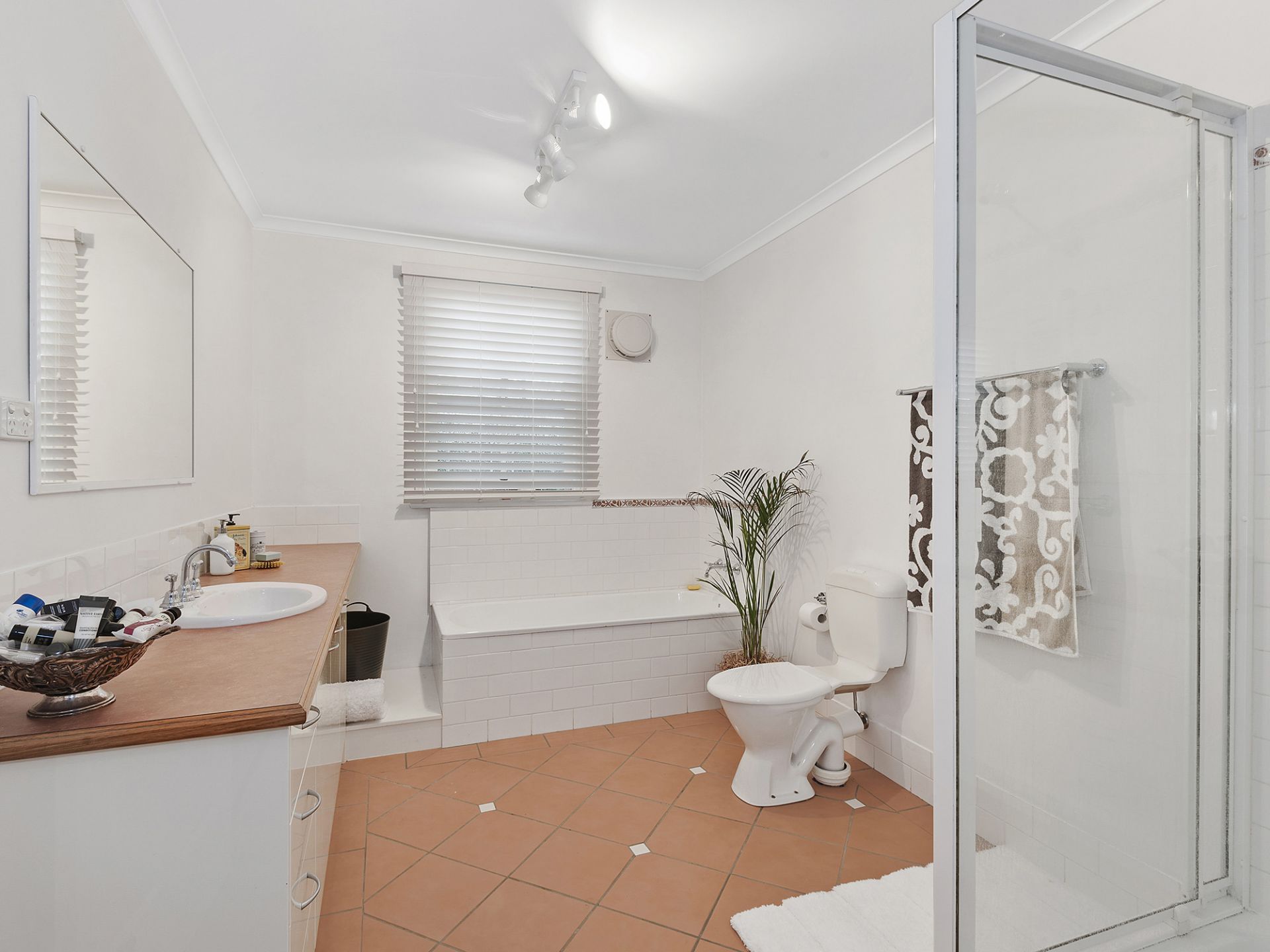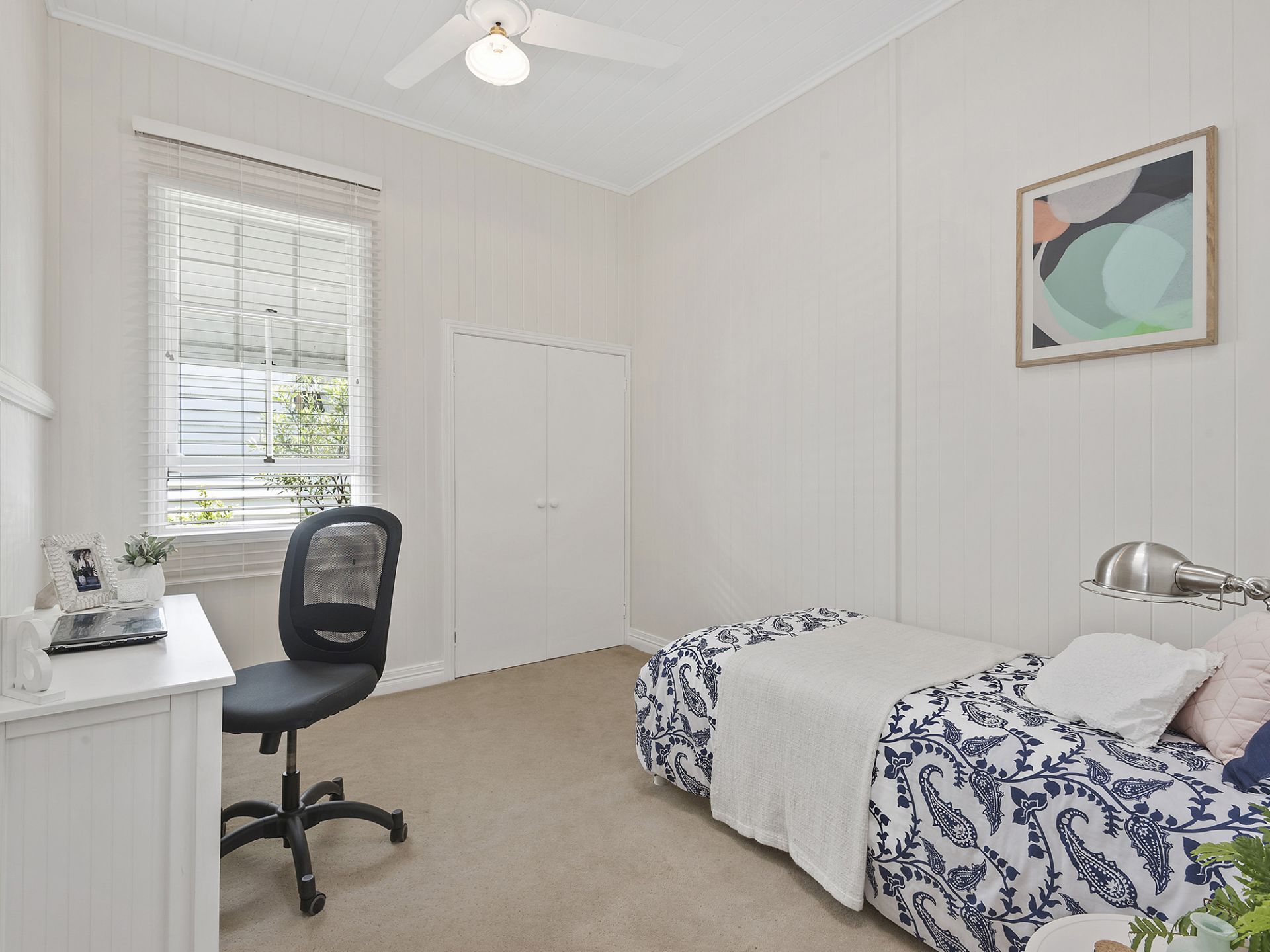 Downstairs large spacious bedroom opening onto garden, plus full bathroom with bath and shower, adjoining spacious Lounge room/Study.