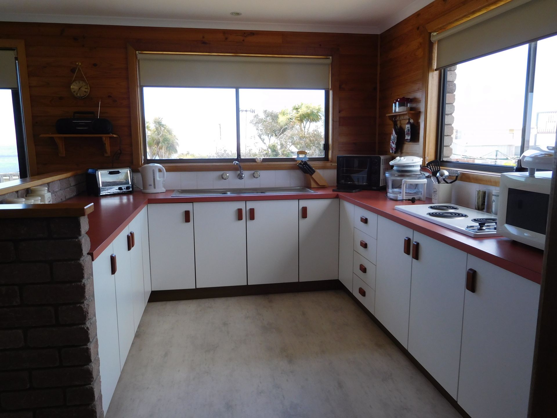 Brick Veneer home, excellent sea views, large living area wood heater and heat pump, separate toilet, lockup garage and large storage area under plus storage for boat. Fully furnished. Near by attractions, lovely 9 hole golf course, community play ground, boat ramp, safe sandy beach and rock fishing.