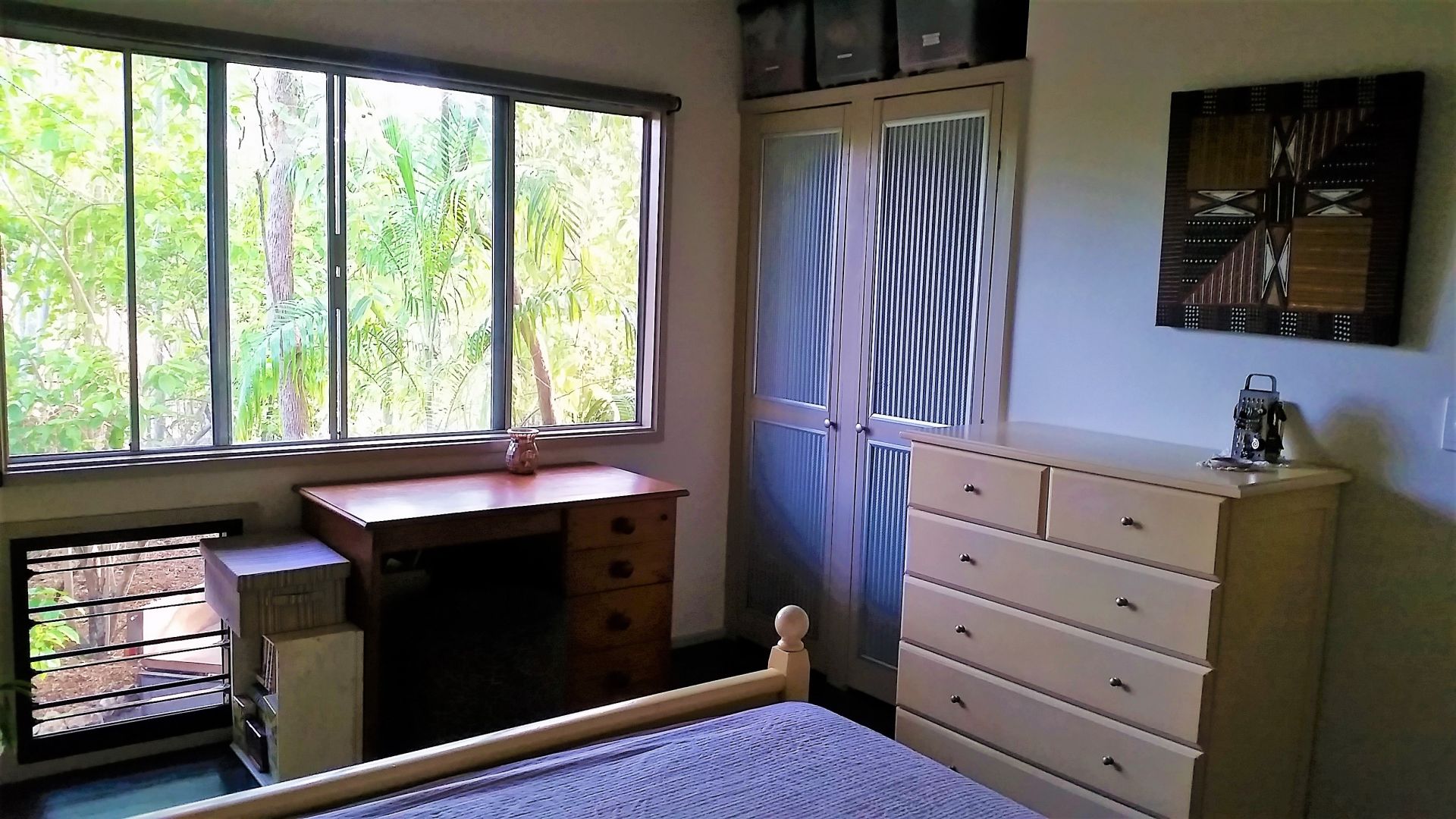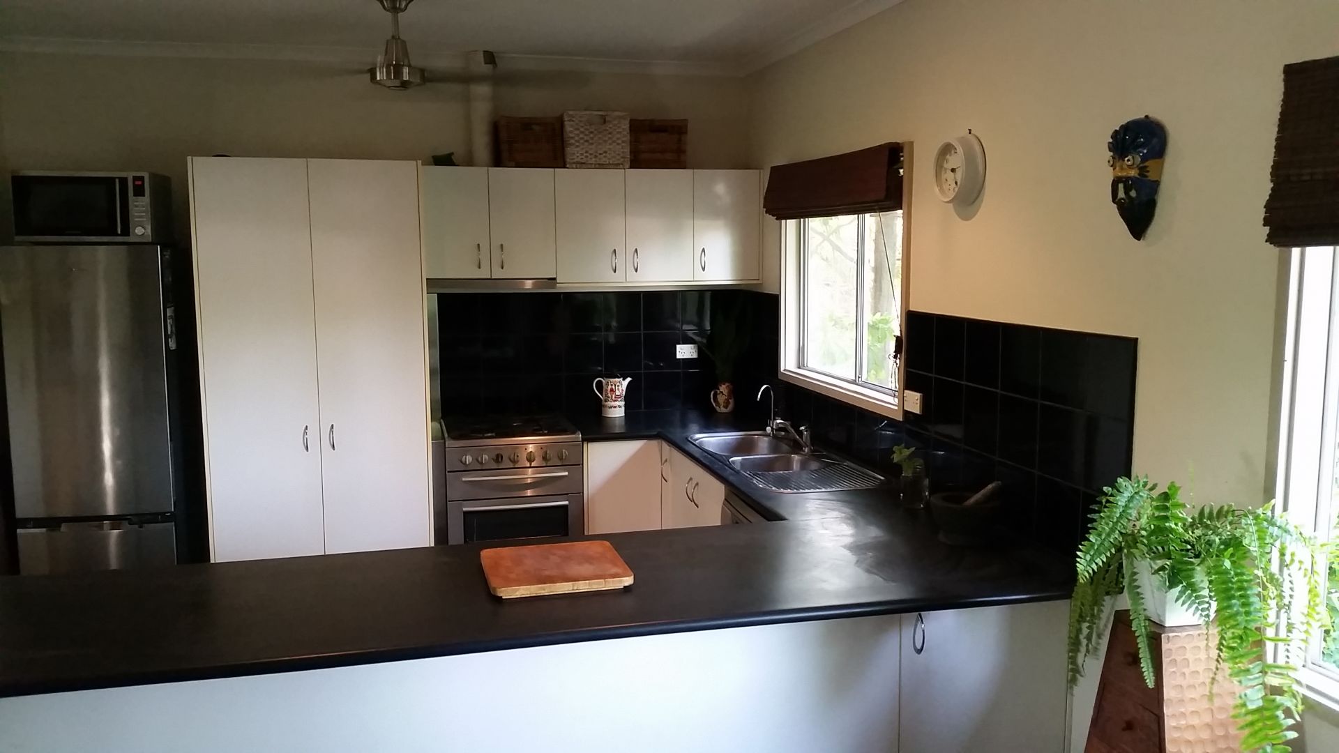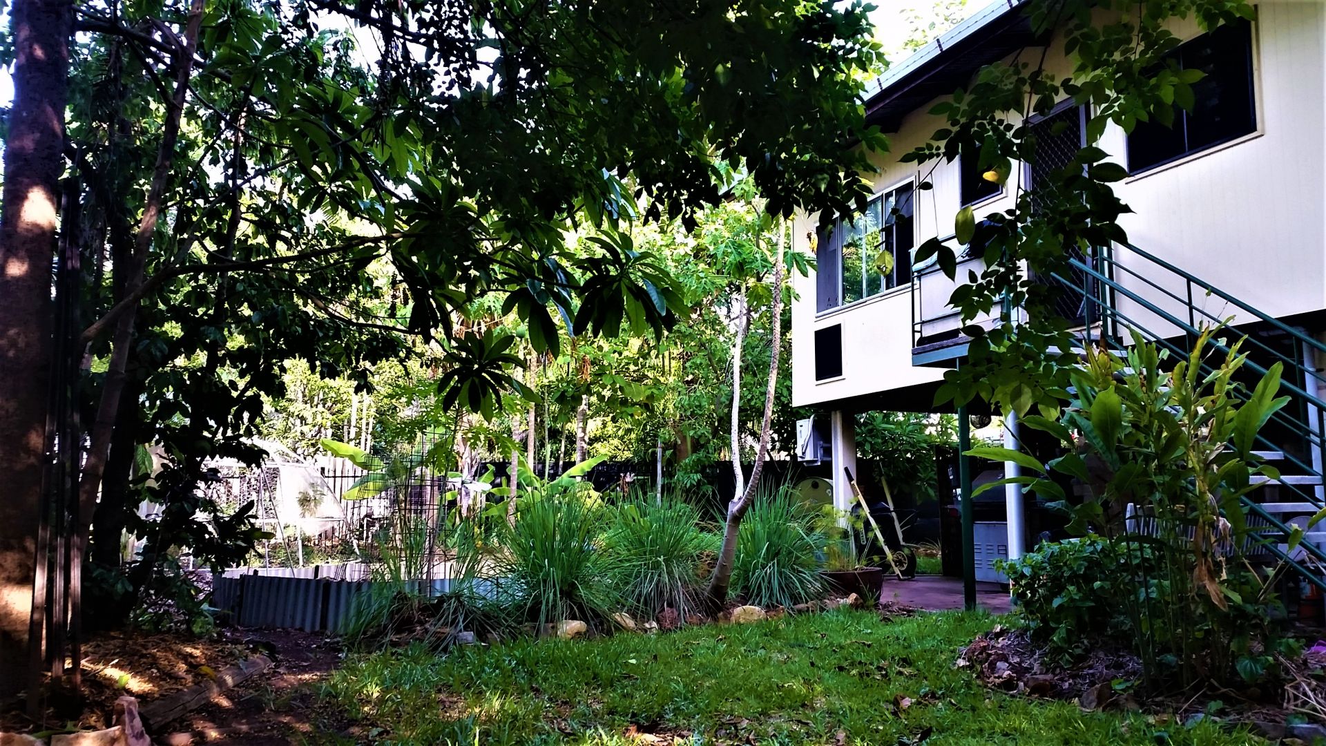Get out into the backyard to grow and harvest your own food from the paw paw, banana, limes, custard apple and sour sop trees or raised herb garden beds. The leafy native garden is a haven for wildlife including a huge variety of birds, butterflies, frogs, possums and lizards. Sit on the deck to watch the action or settle into a cosy sit spot in the shade.