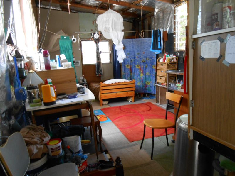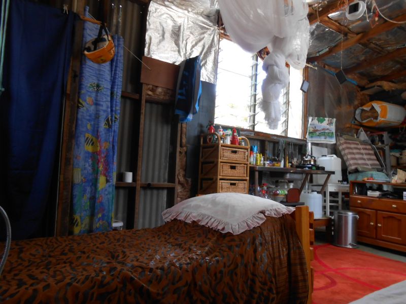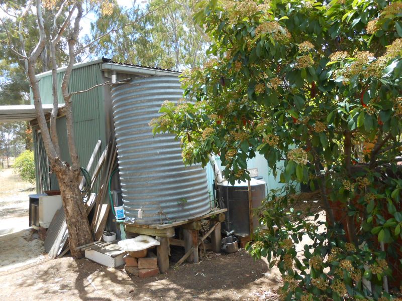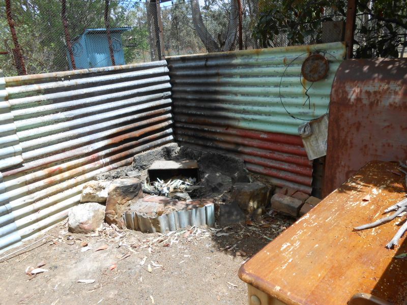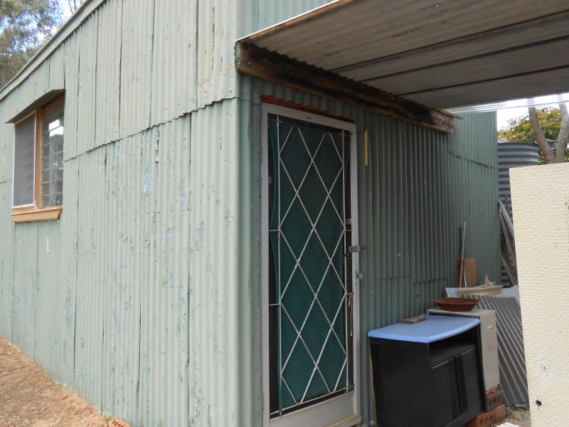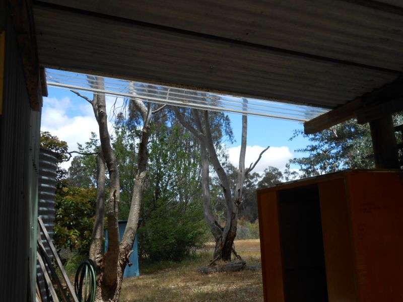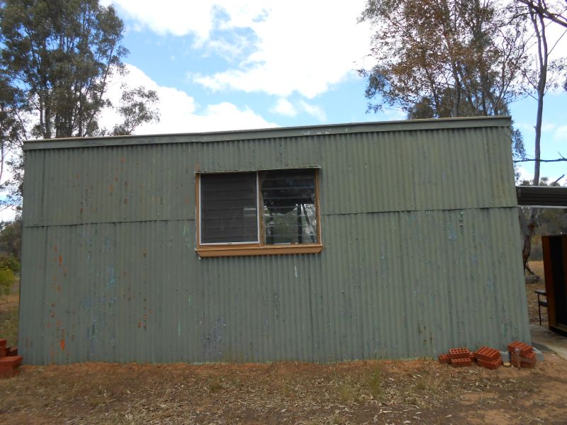 The solid and sturdy weekender measures 7.4 metres by 3.7 metres with very high ceilings, hardwood frame, insulated walls, lots of windows with fly screens, cross ventilation, open plan living with lots of natural light, large water tank with smaller run off tank, is offered as a walk in, walk out. Only personal items and anything that you don't want will be removed. Kitchen sink with running tank water, outdoor bath (almost installed) and internal and external bush shower. Built in outdoor fireplace in enclosed area with firewood storage and alfresco area in the shady peppercorn trees. Internal camp toilet and external toilet (not plumbed). The public main toilets for the town are on the main street and are open 24 hours. There are also some near the open air swimming pool which is open in summer. Also contains lots of built in storage shelves, kitchen and linen storage cupboards plus push bike for exploring the area as there are a lot of tracks to go on. Just imagine camping here for all your holidays with family or friends while the property increases in value. Better than camping in a tent and you have all that land to play with and no-one next to you like in a caravan park.