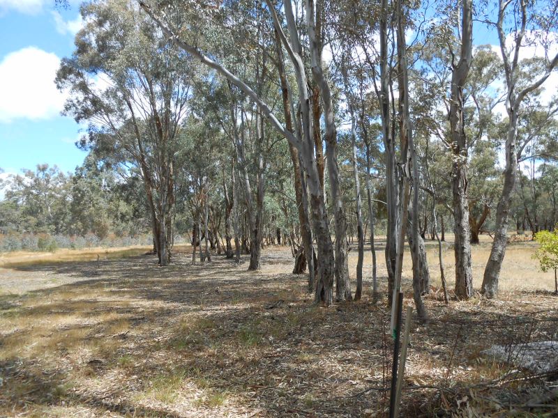 Part cleared, part new growth and part large trees. Less than a minute's drive into town, which has a bakery, swimming pool, supermarket/liquor store, fruit shop, pub, primary school, doctors surgery, chemist, gold and caravan museum, butcher and several other antique shops and cafes.
