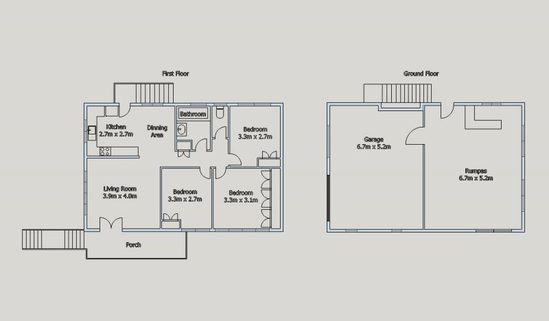 The kitchen is modern and in good condition, it connects with the dining room and the living room.
