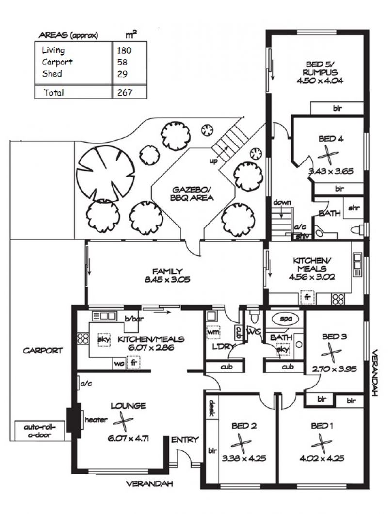 There are 3 bedrooms in the main home and another 2 in the extension. A separate second kitchen / meals area in the extension, caters for bedrooms 4 & 5. All 5 bedrooms have built-in robes and bedrooms 1 through to 4 have ceiling fans. Bedroom 5 has the option of being a rumpus room with sliding glass doors opening to the gazebo area. There are 2 bathrooms, the main offering a spa bath. A separate toilet and a walk through laundry complete the wet areas.