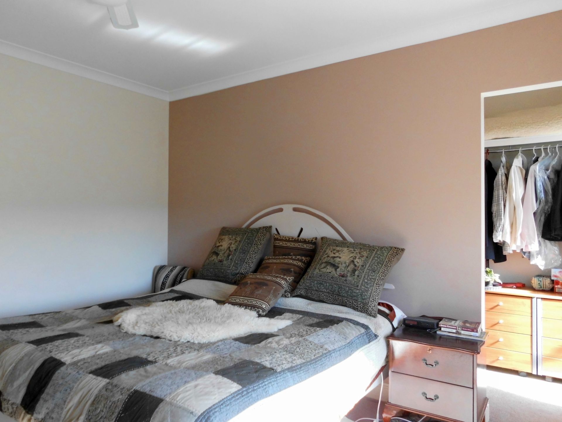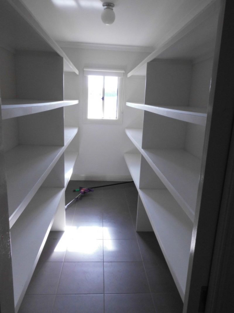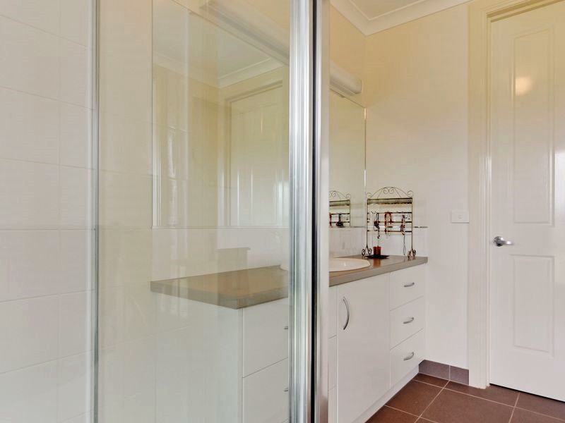 The living room and dining areas are very spacious and allow enough 'in between' room for a large study desk (see pic 11). There are four bedrooms, one with a large WIR and separate en-suite; the other three bedrooms have large BIRs with 3 sliding doors each. It has two living areas, dining area, kitchen with large L-shaped walk-in pantry and three double power points for all your appliances, a large storage area, with 4 storage levels on both sides, bathroom, laundry and separate toilet. The house is approximately 27 squares. There is a large 49m2 covered outdoor entertainment area at the North of 49m2 and a two-car carport with 3-4 bay shed of 122.5m2.