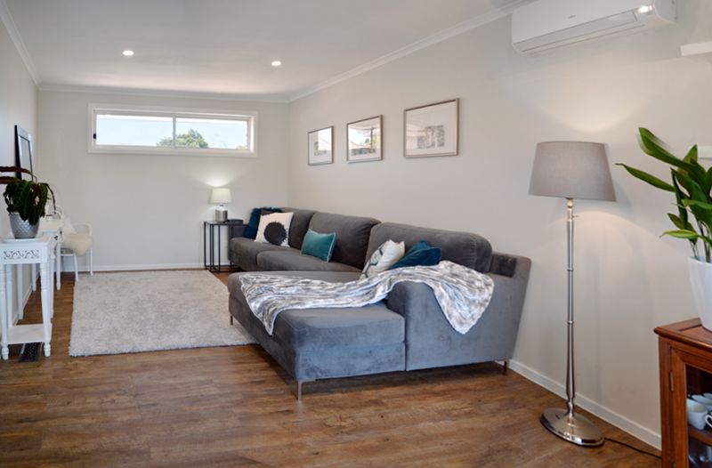 Beyond the kitchen space you'll find the bathroom, toilet and laundry; of which each are absolutely stunning in their design. In the bathroom, you'll love the large 1200mm x 900mm shower with dual shower head. Take time to imagine the relaxation you'll experience underneath all that water pressure! The bathroom is also fitted with a large wall mirror, classic double cabinet vanity with beautiful tap wear and two extraction fans.