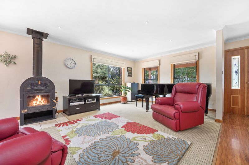 The combined lounge, dining and kitchen area is light and airy with large windows and double glass sliding doors. A combustion wood heater warms the whole house in winter. The kitchen has ample bench space and storage, including a large pantry. An extra wide passage area can be used as a computer nook or play area. The master bedroom contains a walk-in wardrobe and ensuite, with BIR's in the other bedrooms. Generous storage spaces throughout.