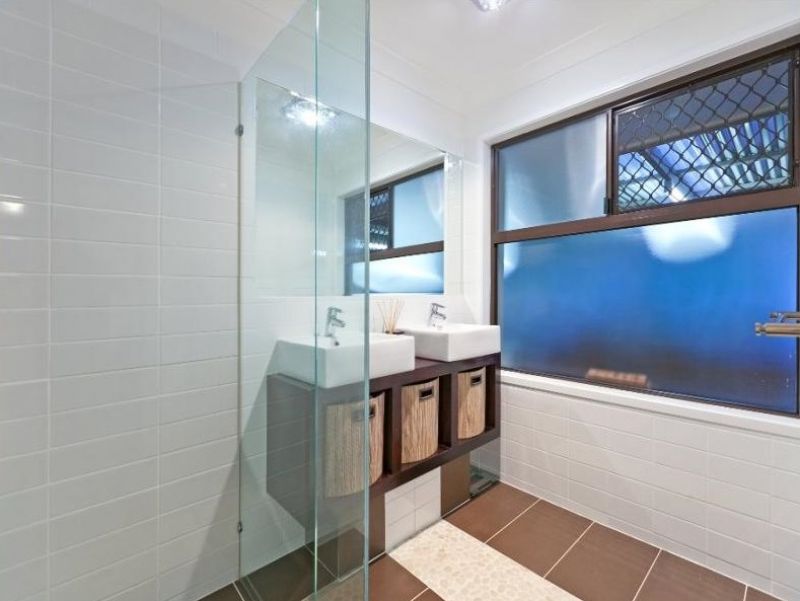 - Modern renovated bathroom with twin vanity units, exhaust fan with light and heat functions.
