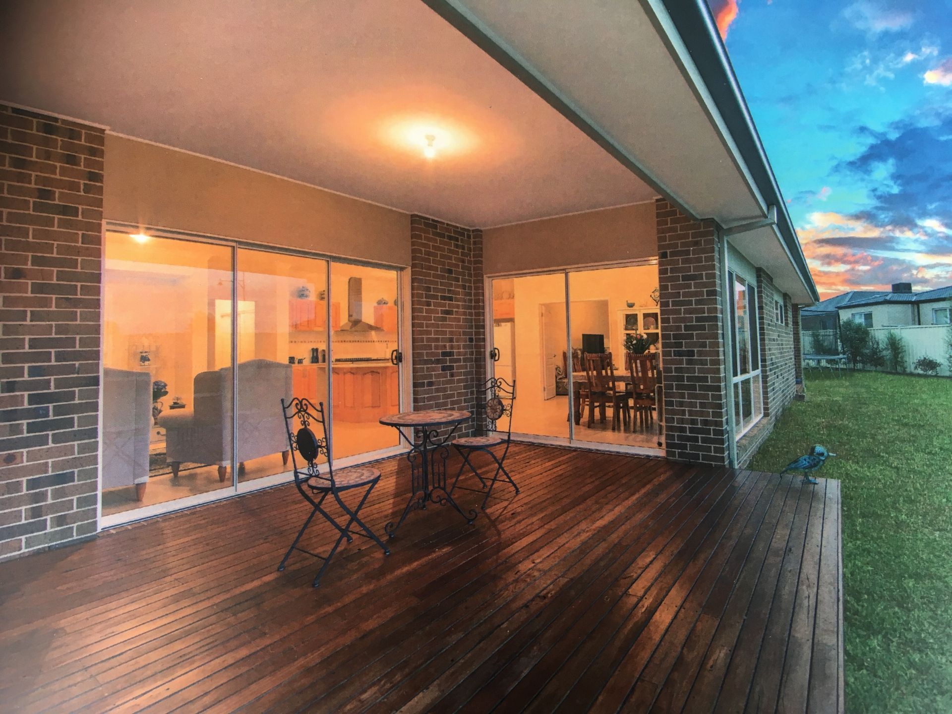 2 outdoor entertainment areas under roofline with extensive hardwood decking.