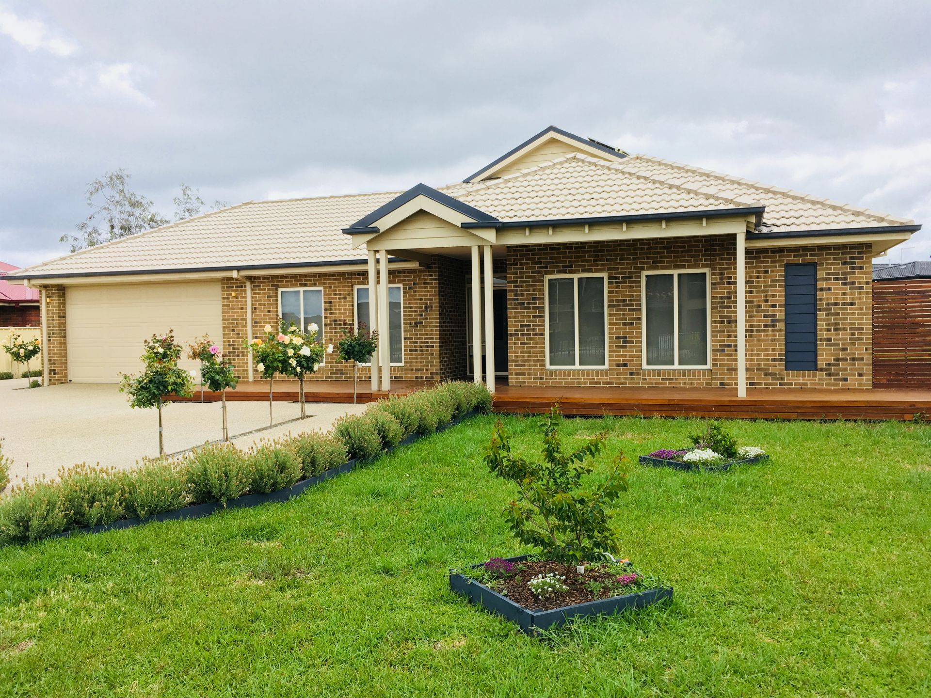 Extensive landscaping with Manicured front & back lawns & rose garden beds.
