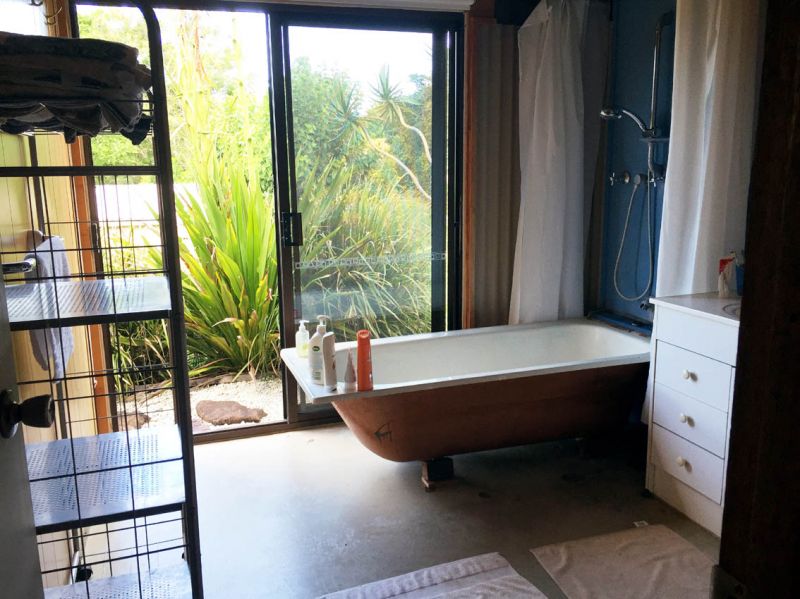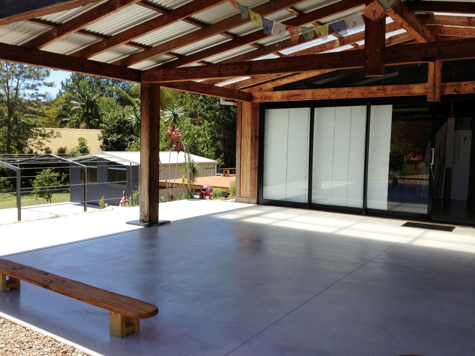 -Large liveable studio, which is a renovated shed with additions. Studio shed area is width 9m wide x length 15m with carport width 12m x length 8m. Studio has plenty of double glass sliding doors for light and ventilation. Kitchen, bathroom, laundry and 2 bedrooms. Insulated and ventilators. Front has triple sliding doors each way that open up the entire front of the studio. Gloss sealed concrete floor throughout. Carport is made from recycled oregan timber with 300mmsq columns. Large deck on the side 4x8m, Red Bean timber decking boards, but sadly is not suitable for outdoor exposure and is deteriorating over time and needs replacing, the supporting structure is fine.