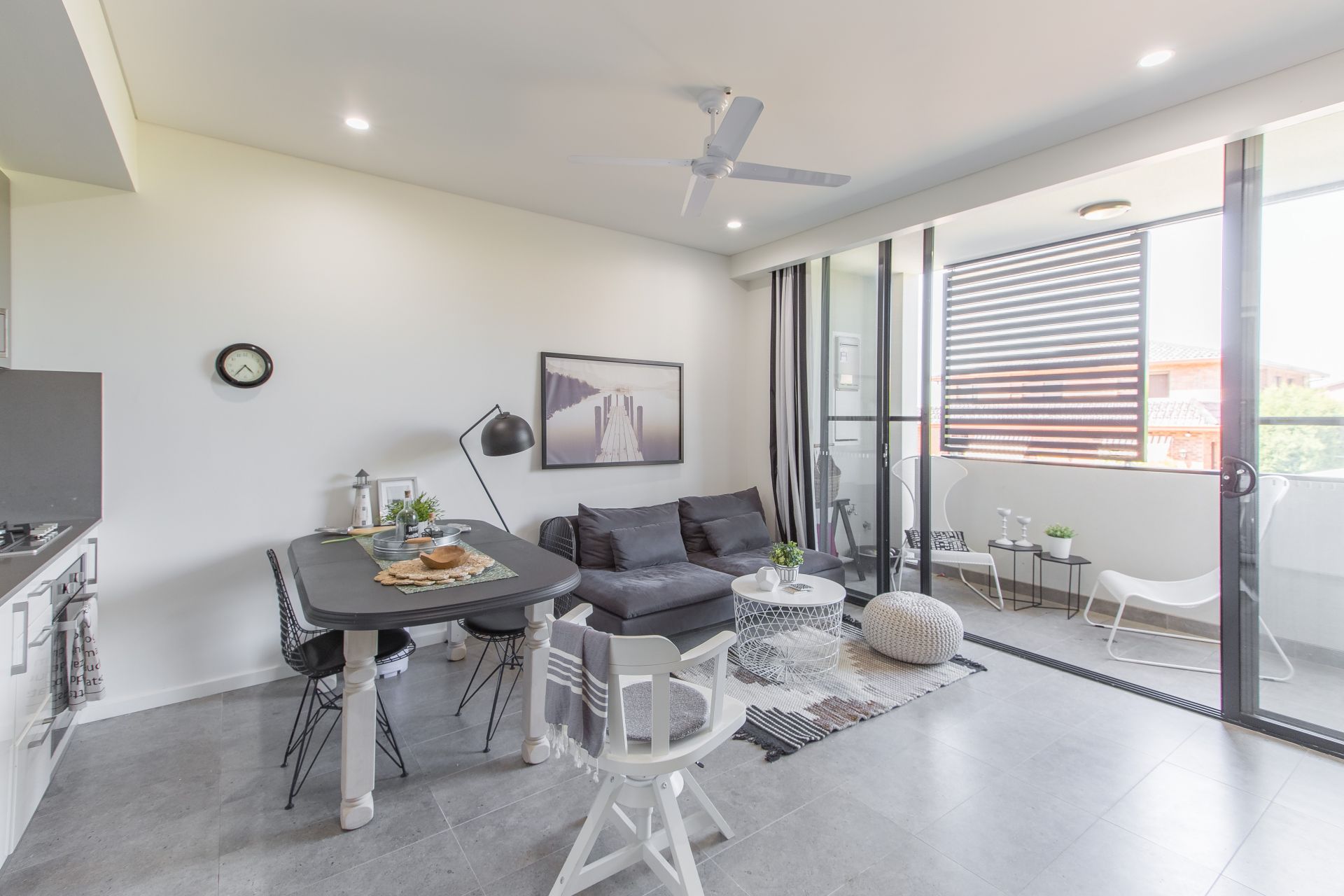 Modern open plan dining and living leads to sunny and bright balcony for outdoor leisure