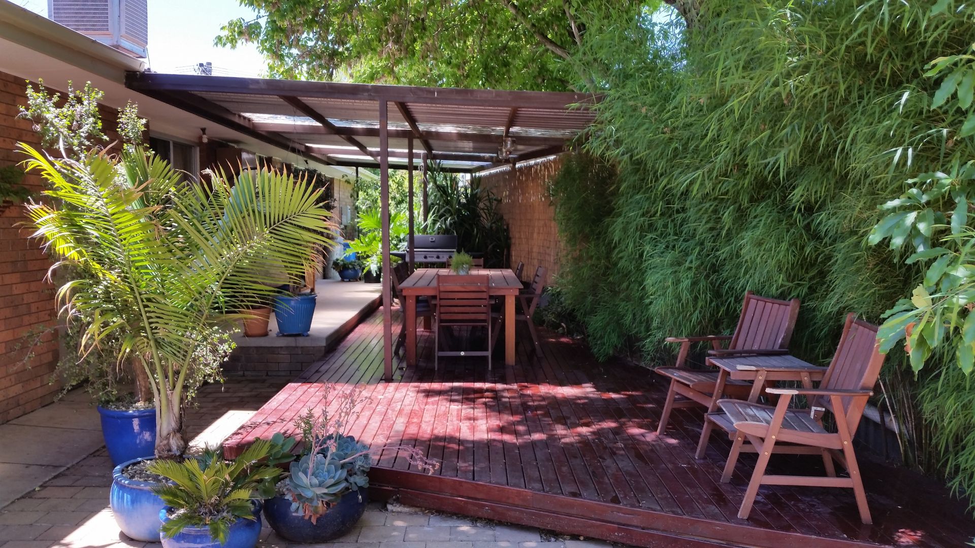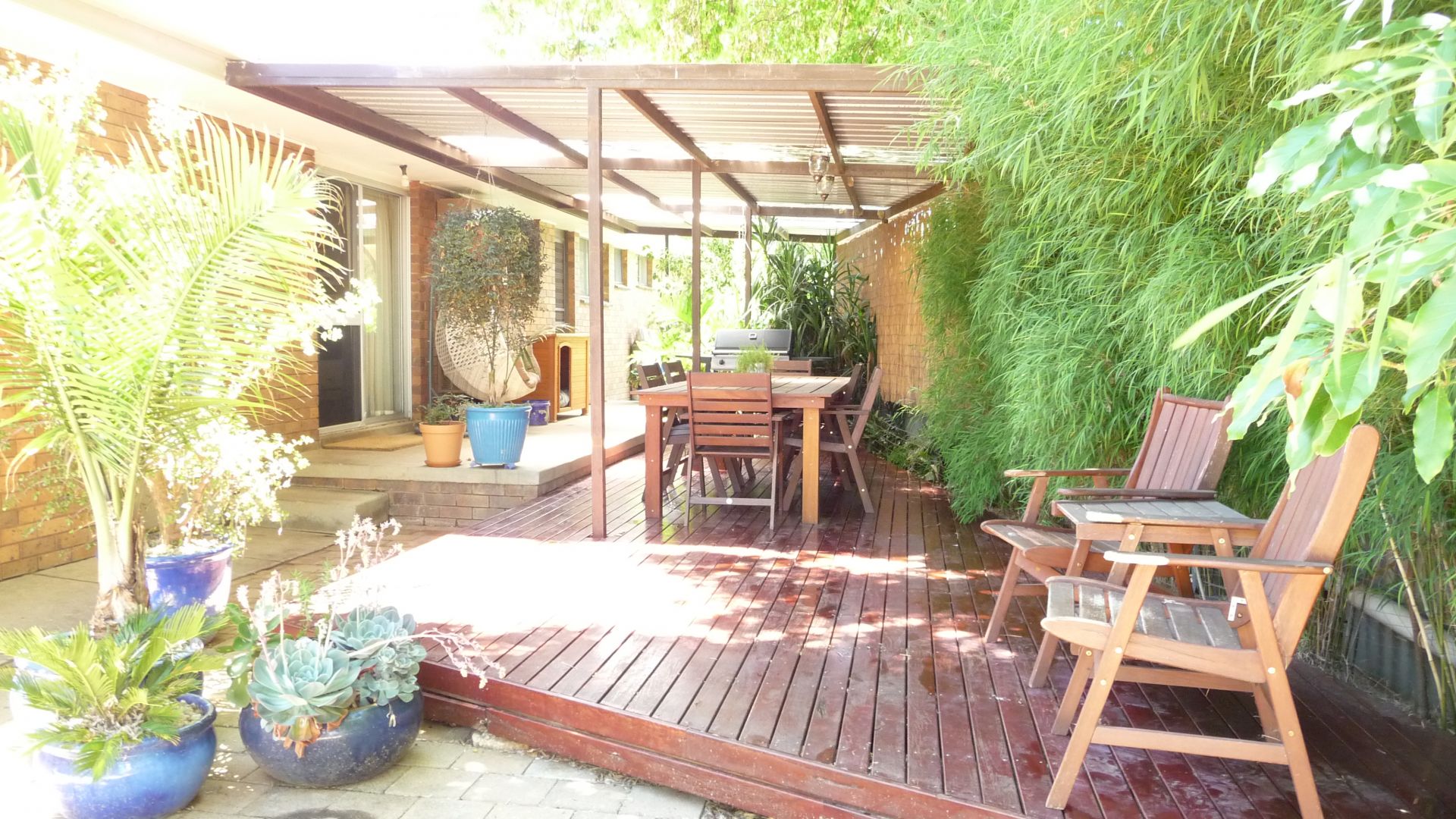 The front garden has been designed to include many native plants that encourage bird life as well as having large trees that provide summer shade with an automatic irrigation system to make maintenance easy. Stepping out the backdoor takes you to a large outdoor undercover living area, with a newly built Red Gum deck, lined with bamboo. The secure backyard is fully fenced offering a carport, workshop/shed with power, and garden shed. The large block allows space for growing vegetables, creating a play area for children and/or whatever you desire.