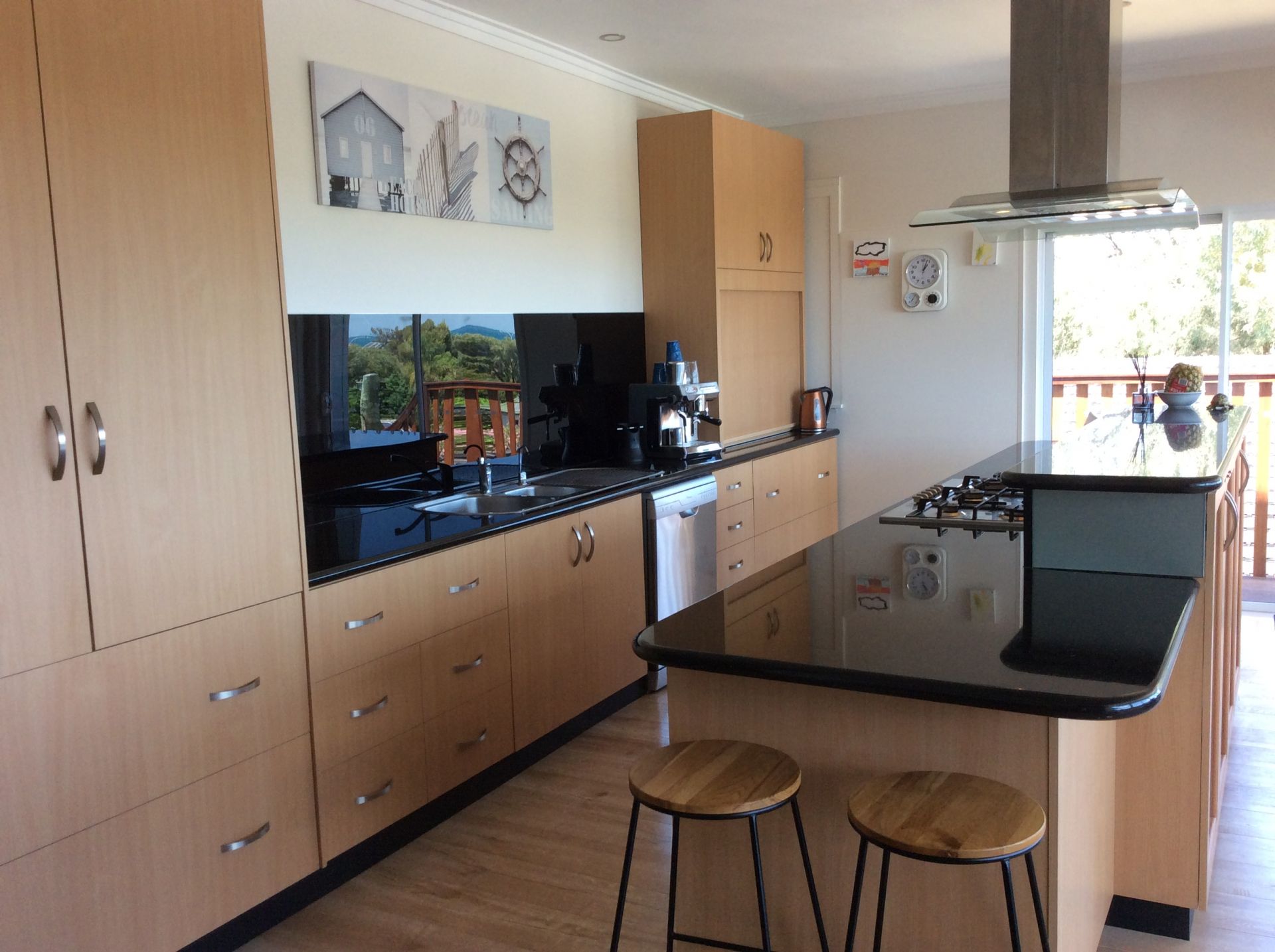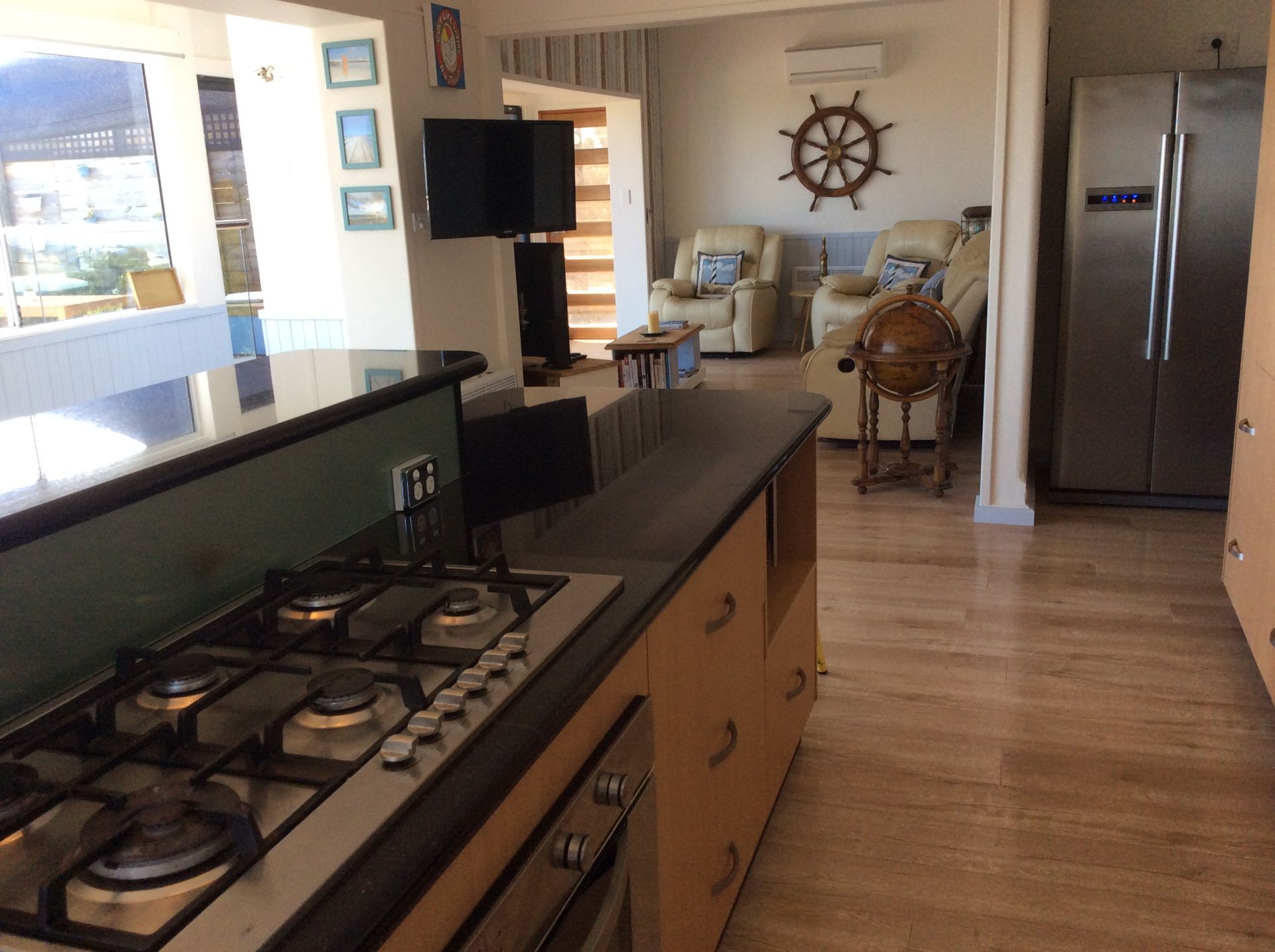 UPSTAIRS : open plan Kitchen, fully fitted with 4 mtr Long kitchen Island , fitted units with Granite bench tops, open plan dinning and lounge. All windows and doors in these areas have amazing views.