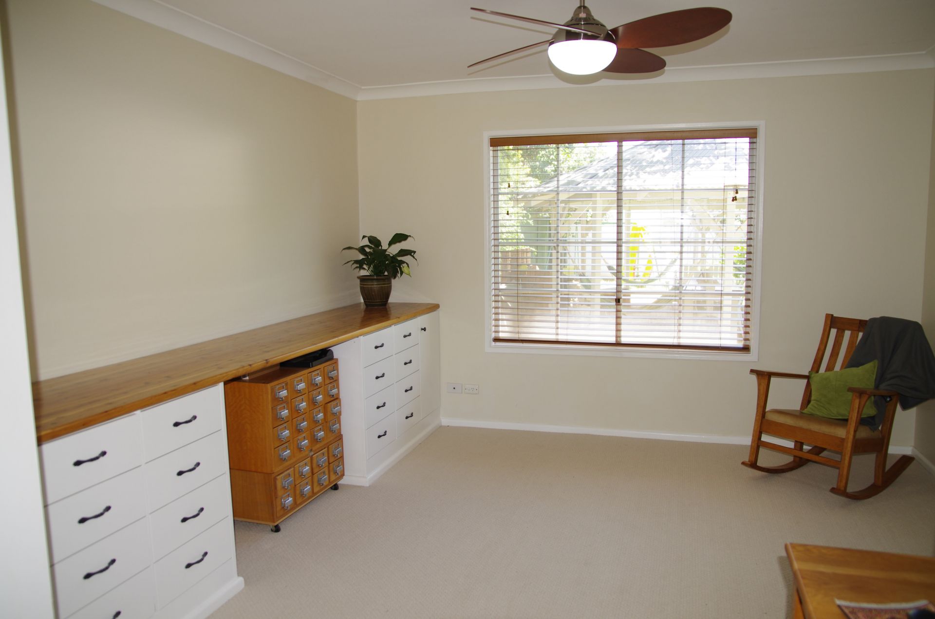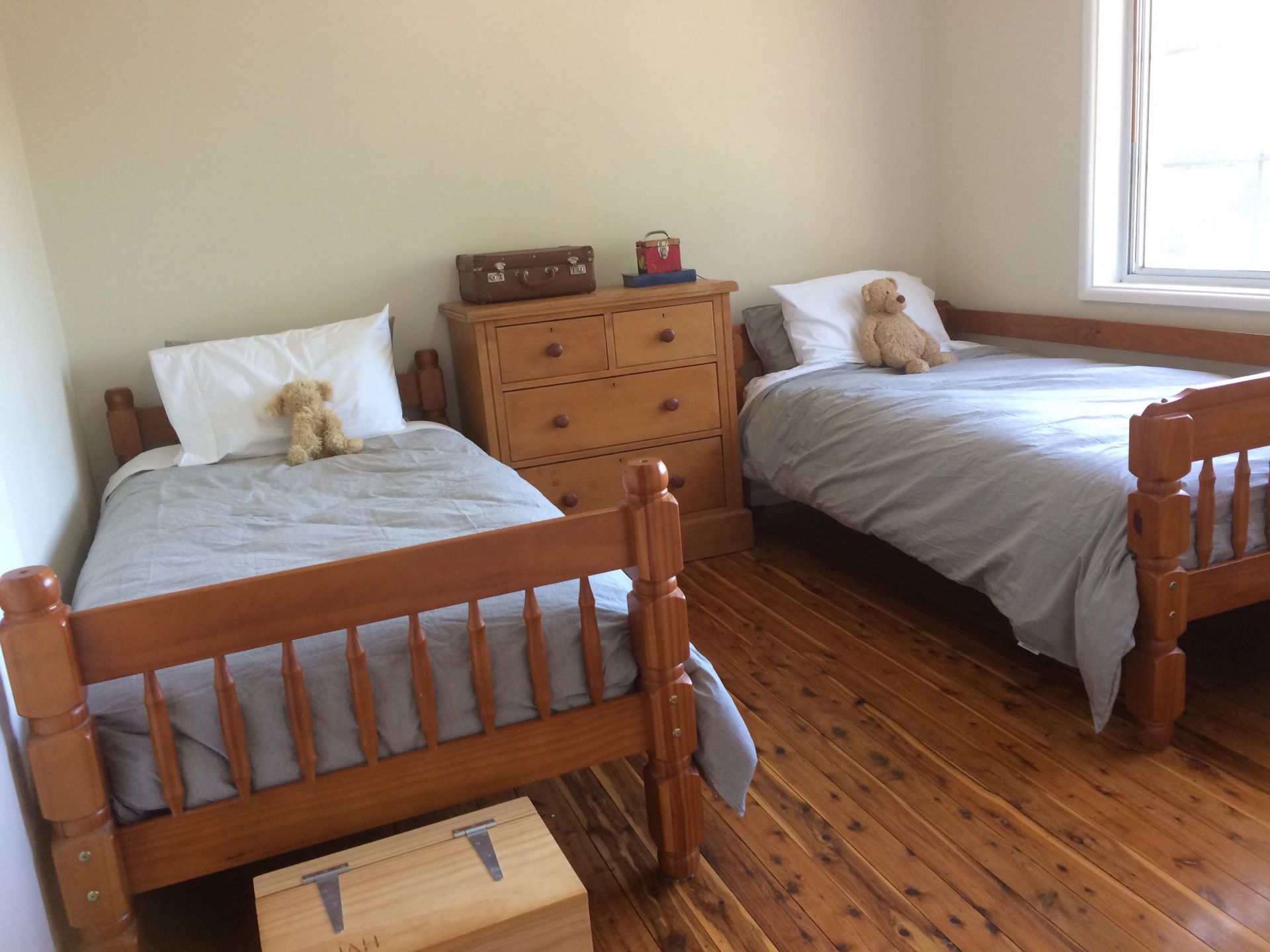 - Bedrooms with polished floorboards, built ins, timber blinds and ceiling fans