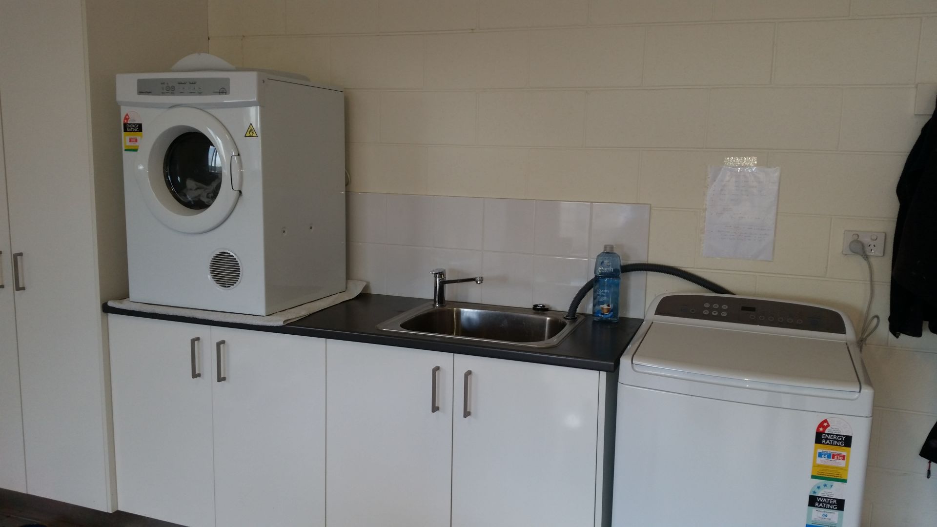 The laundry is located at the rear of the garage which also has high ceilings and plenty of storage.