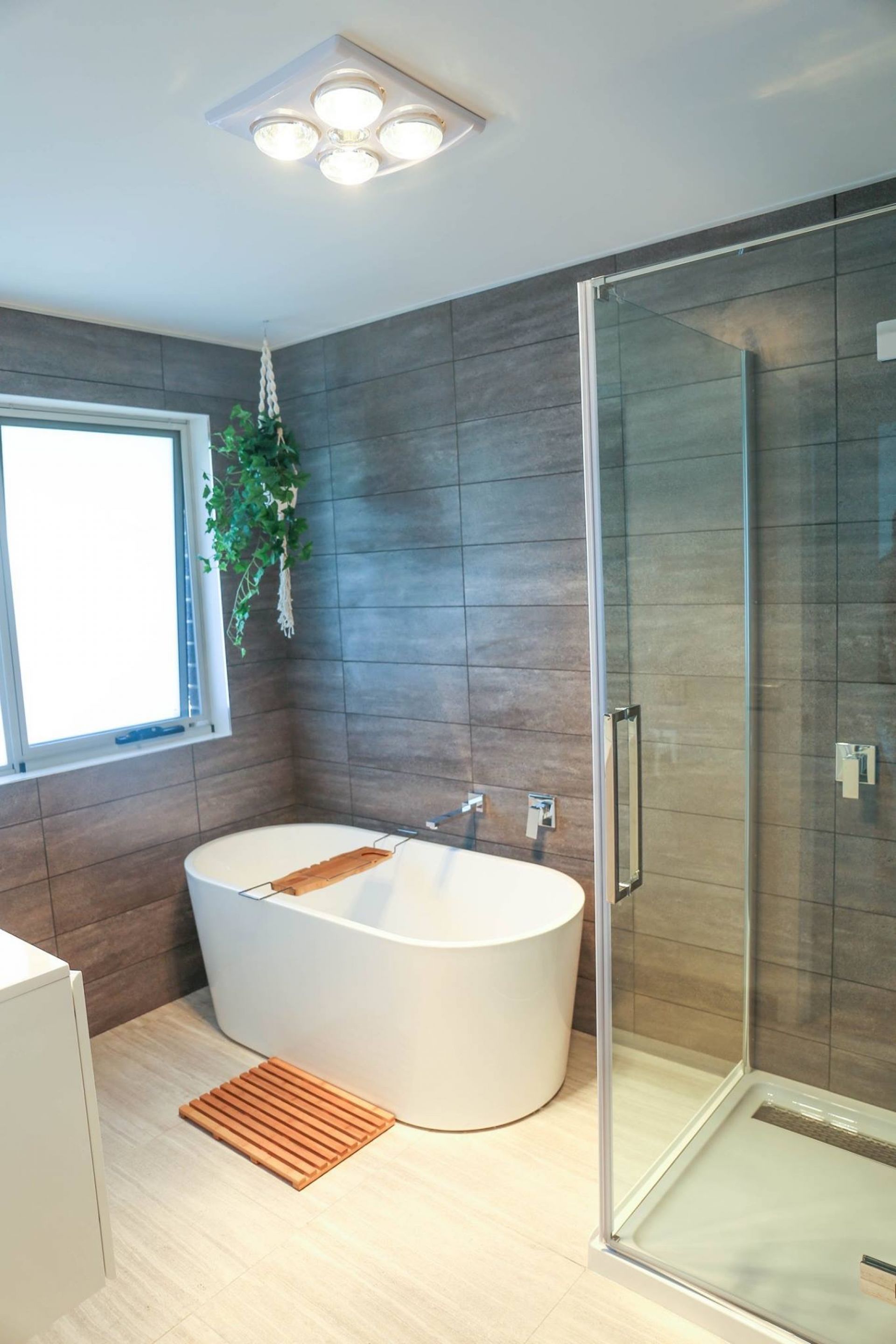 Main bathroom features large shower, free standing bath tub.