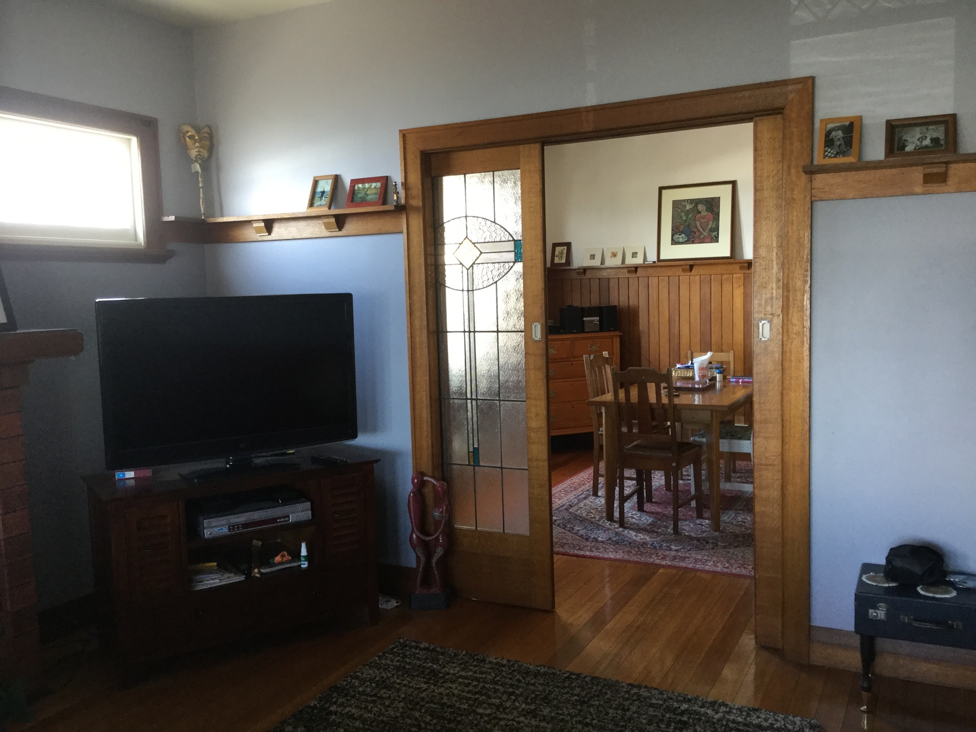 Top floor boasts a spacious lounge room, complete with lead light bay windows and sliding doors plus a wood fire to keep you cosy in winter. This leads into a generous dining room with original wooden dado panelling.