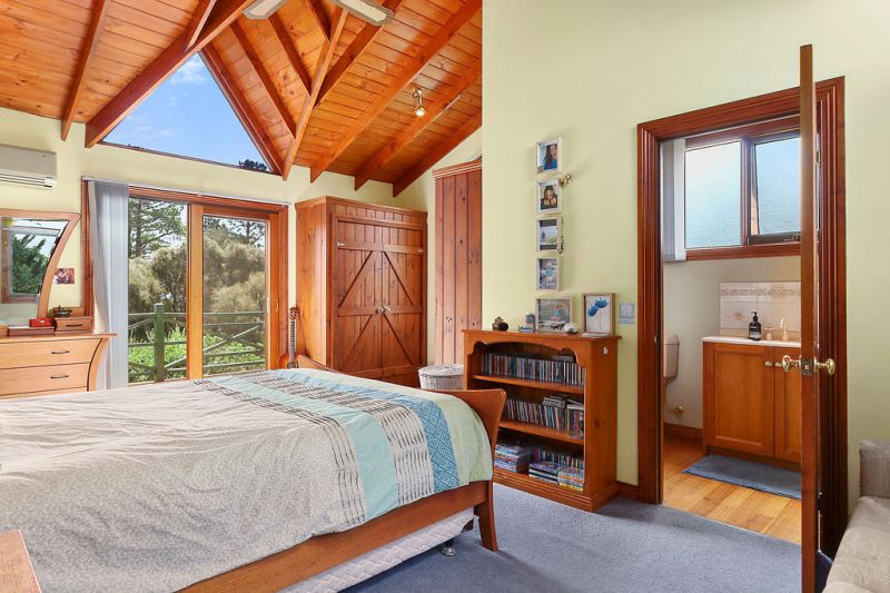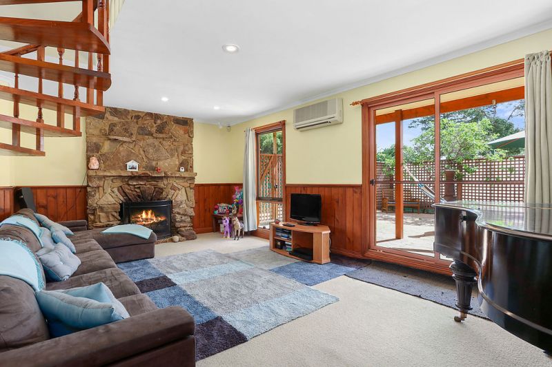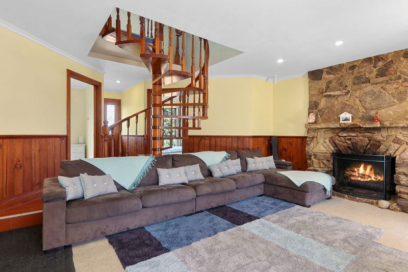 Timber is the hallmark of this property and features prominently throughout. The sunken lounge area on the ground level is large and inviting, with a magnificent architecturally designed stone fireplace as its centrepiece, perfect for lazing around on those cold winter nights.
