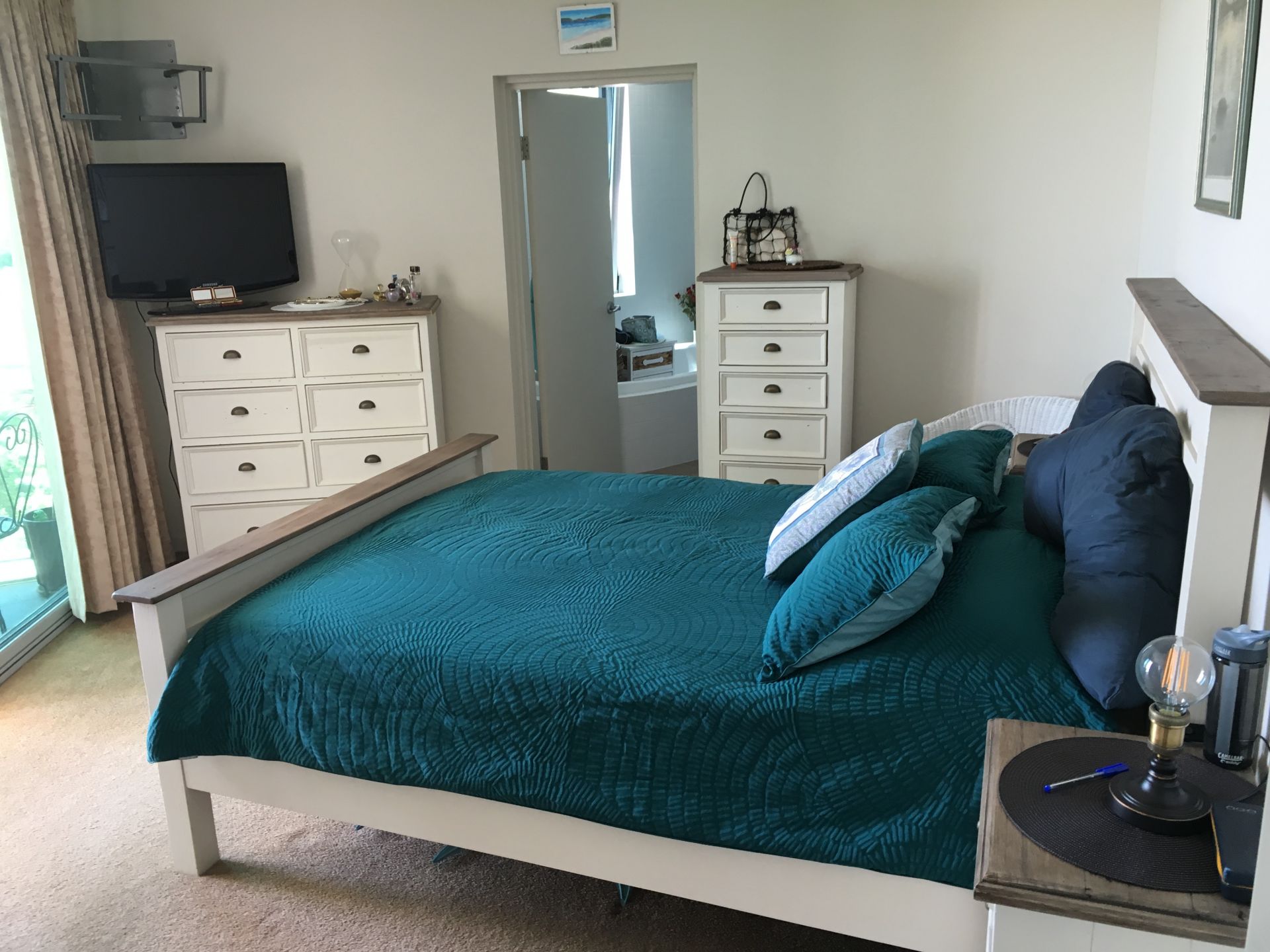 • Master bedroom with views over the bay, new carpet and curtains