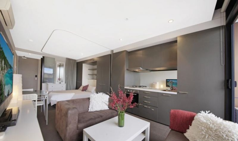 Perfect apartment - The open floor-plan offers flexibility for living, dining and bedroom plus a sleek kitchen with stainless steel gas cooking and dishwasher. The elegant bathroom is fitted with stone bench top and an over-sized shower whilst the well-proportioned balcony is great for entertaining. Additional highlights include reverse cycle heating/cooling, quality cabinetry designed for saving space, dual built in robes, fitted dishwasher with s/s appliances, block out blinds, New York style fold down queen size bed, plus secure basement parking and large storage cage. Situated within a security building with video intercom, concierge, lift access, communal library, cinema, lounge, gymnasium, outdoor terrace and two spas. Easy and flexible city living awaits in this ultra-chic penthouse studio. Located on the 11th floor of this amazing building - no neighbours upstairs, only the roof-top vista and gym!