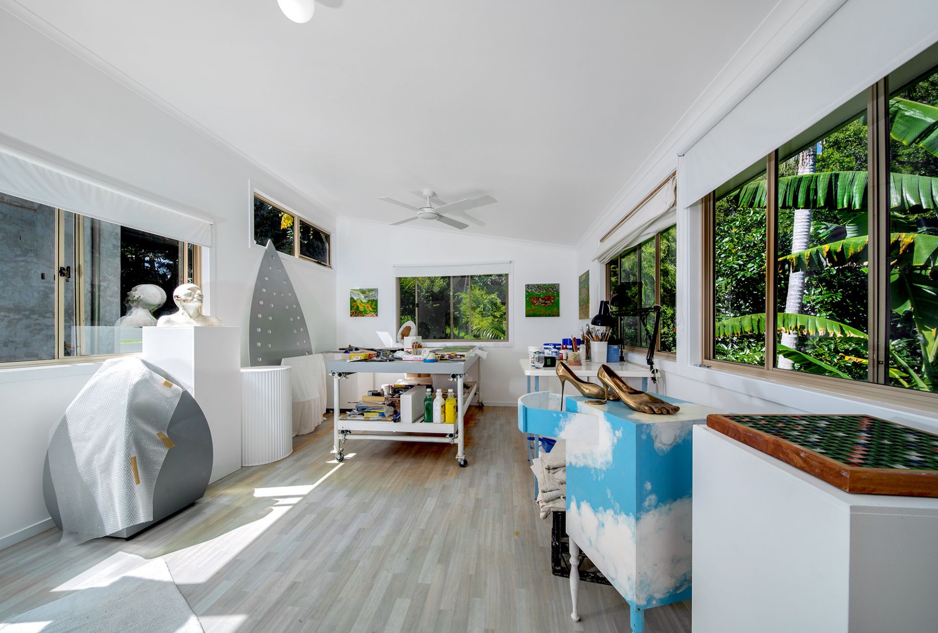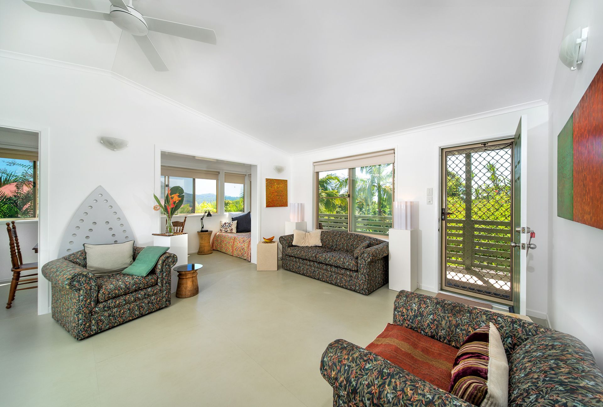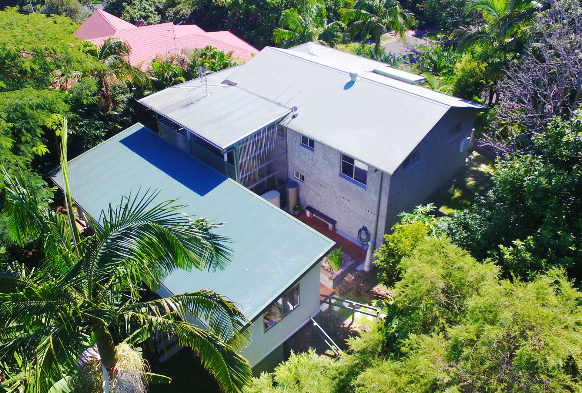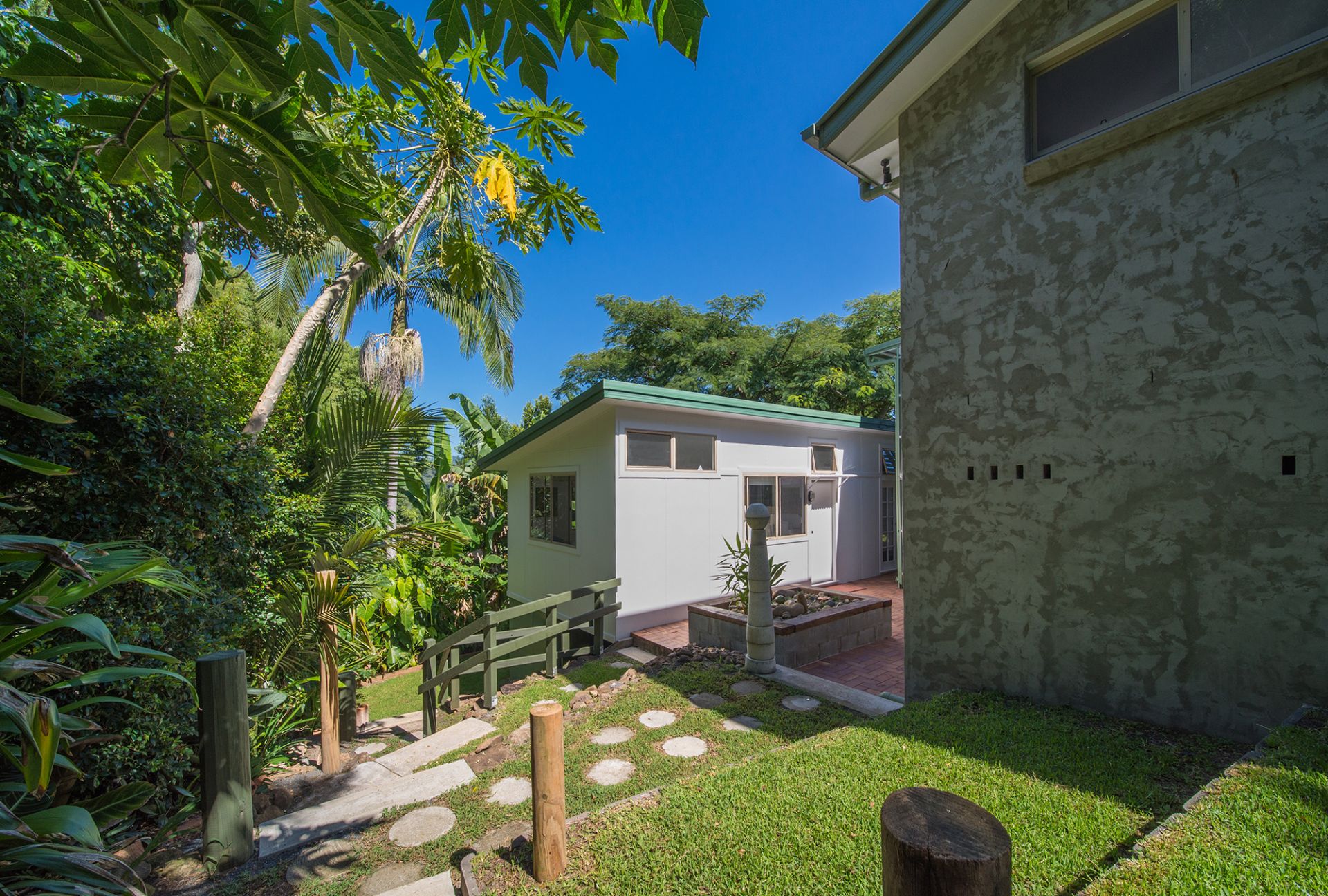 Elevated and north-east facing with views to Mt. Chincogan and Hinterland is this immaculate house plus studio. The bright and airy home is in pristine condition featuring upstairs three bedrooms, one bathroom, open plan kitchen /dining /living area with decks to the north-west and east. Downstairs there is another shower and toilet, a sizable storage / workshop space and a single garage. There is also a fully self-contained studio which feels very spacious with its high ceilings and clean lines and makes a great art studio / home office or be used as a rental. Perfect for the extended family or for the home owner who looks for that extra income. Located high up near the end of a cul-de-sac there is hardly any traffic. The land measures 863 m2 with beautiful established gardens. Call now or see me at the open house on Saturday.