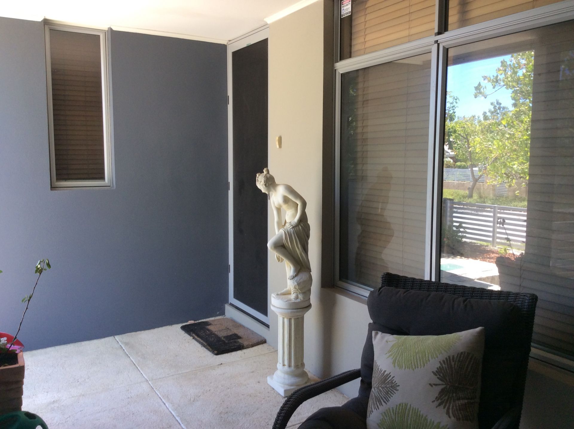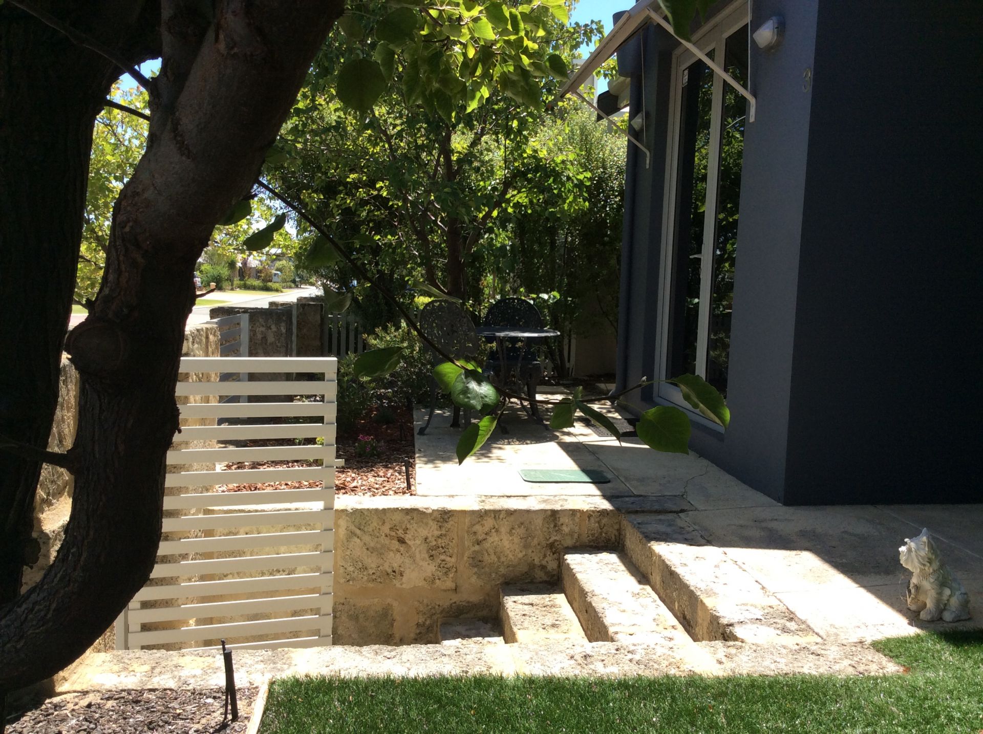 Private shaded veranded out front