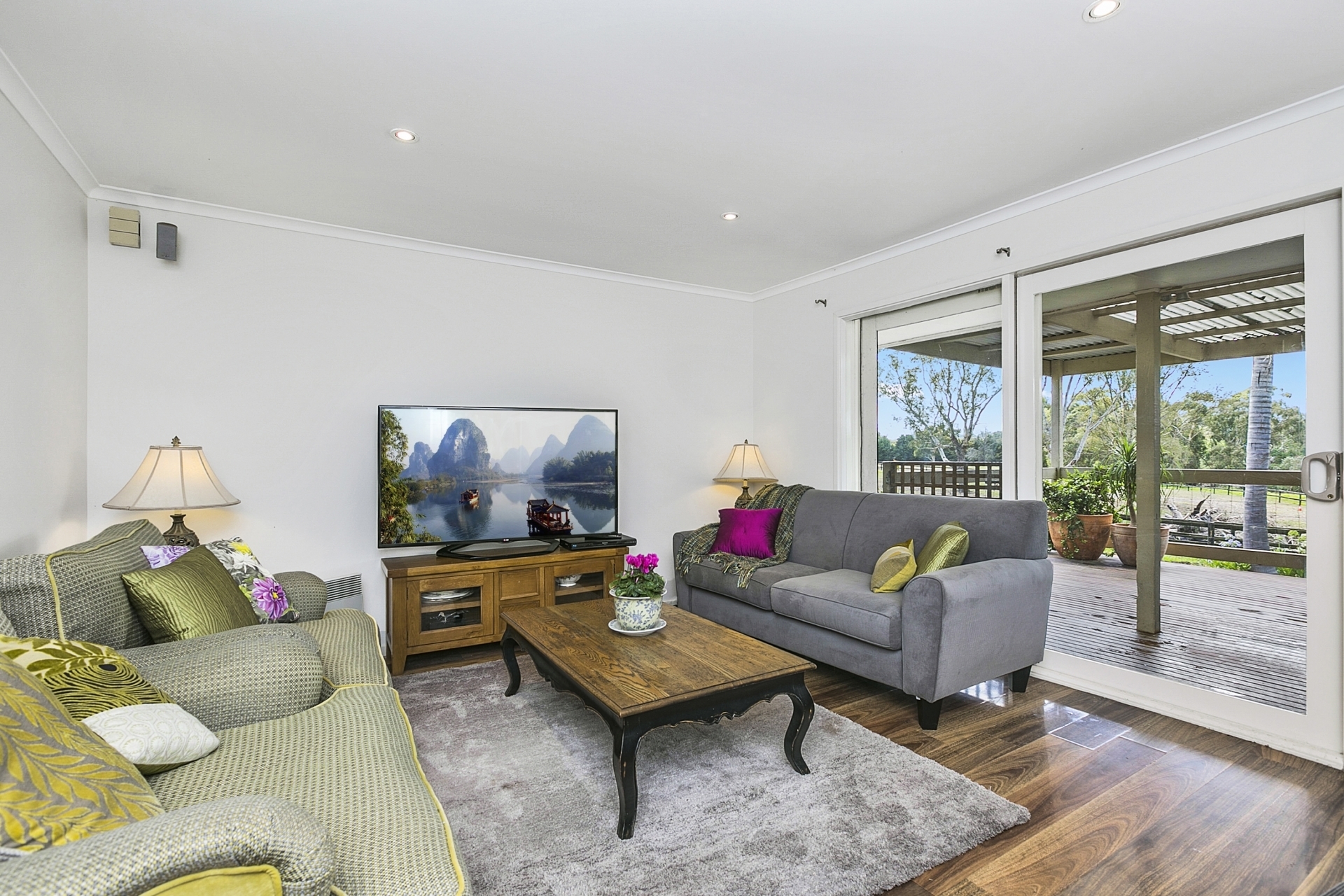There is a north facing 3 X 11 mtr deck over looking the paddocks, garden and lake.