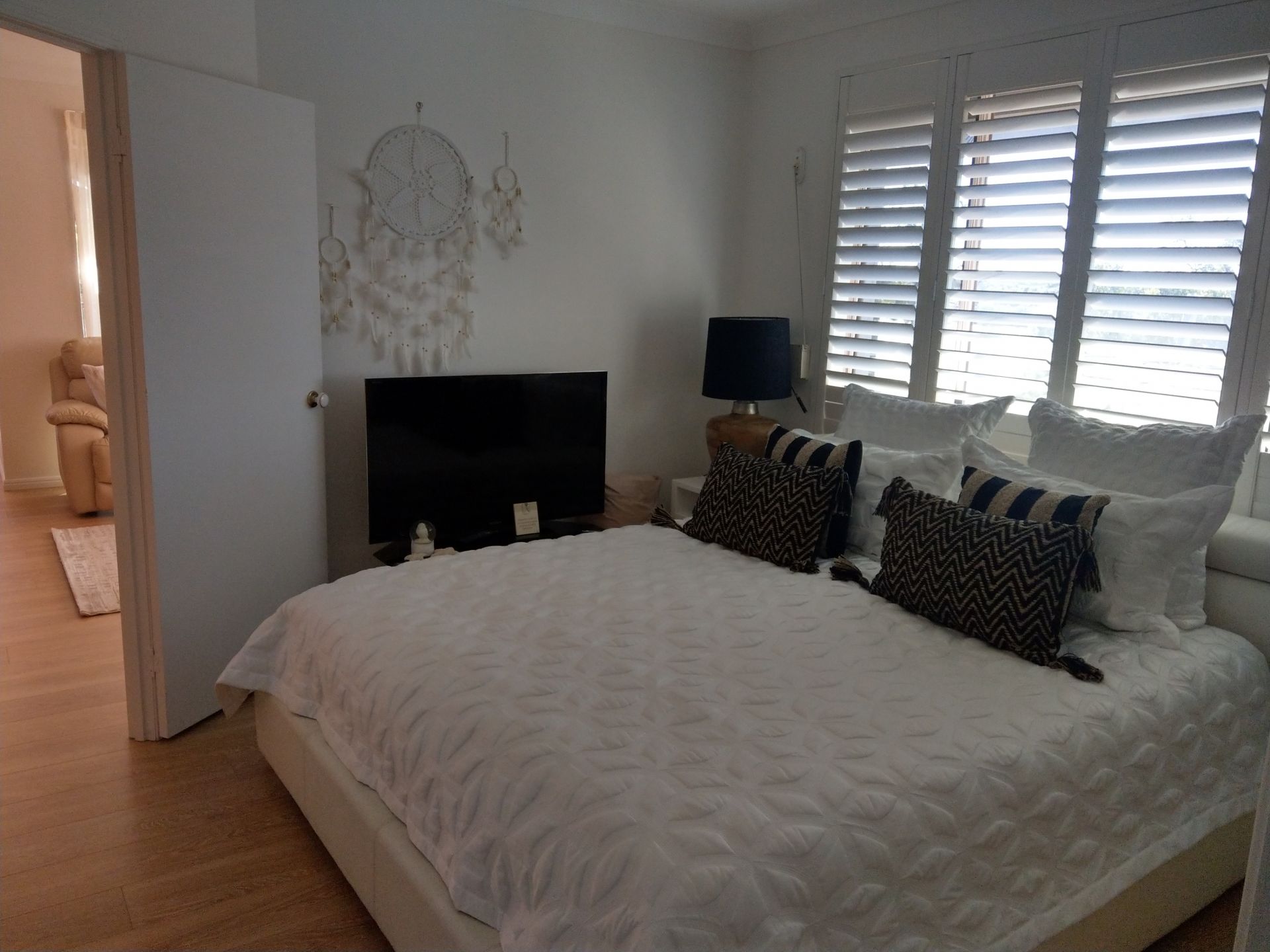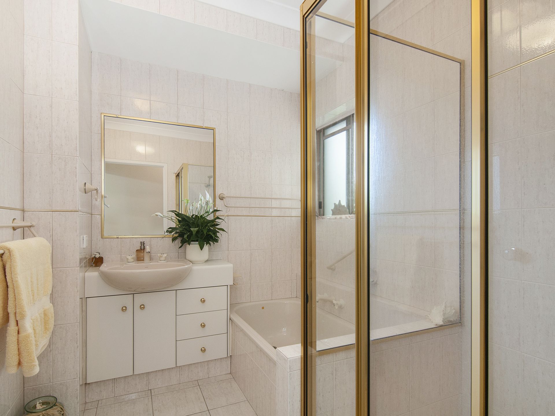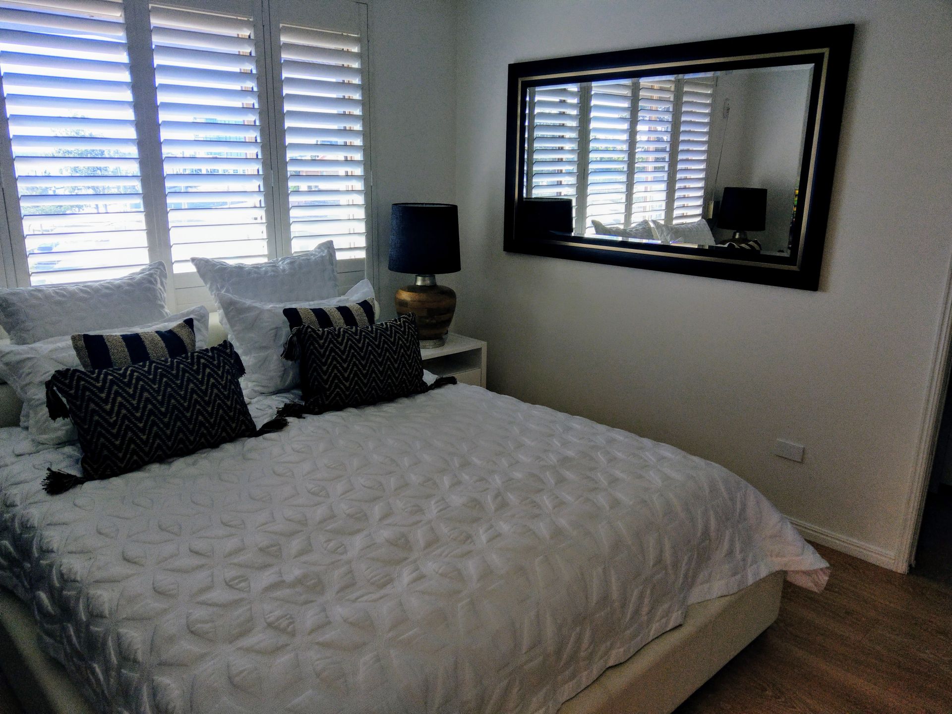 A combination of carpeted, tiled and new timber style flooring invites a diverse personal decor to blend in and/or enhance the neutral colour palate throughout the apartment.