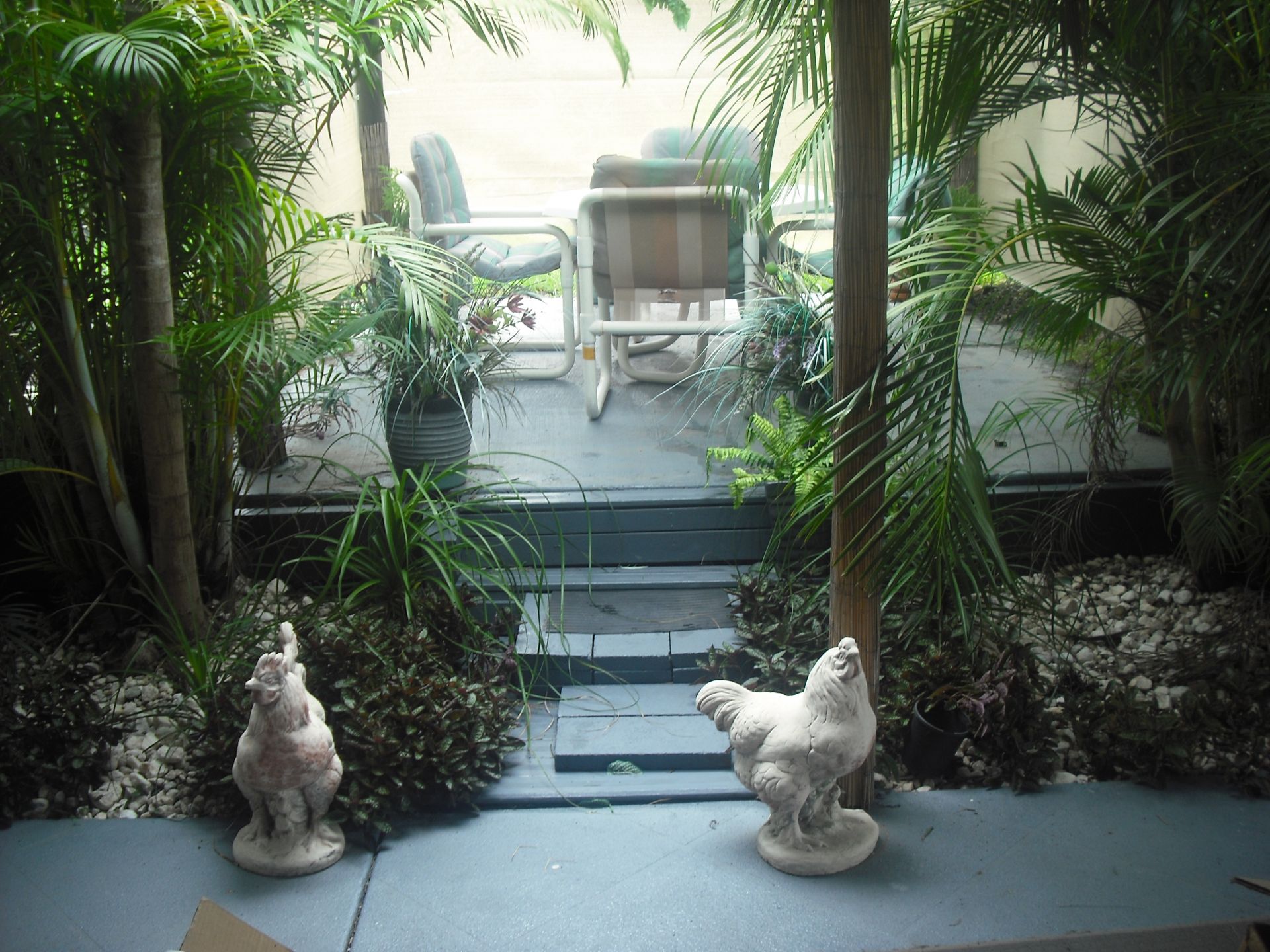 Garden is easy care ,under pebbles .