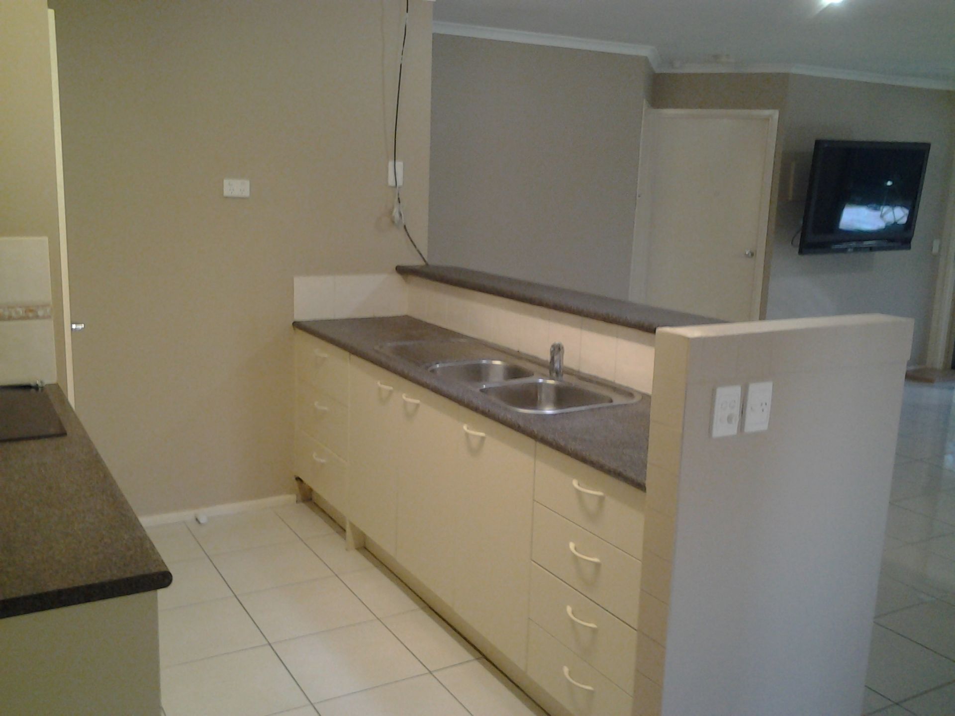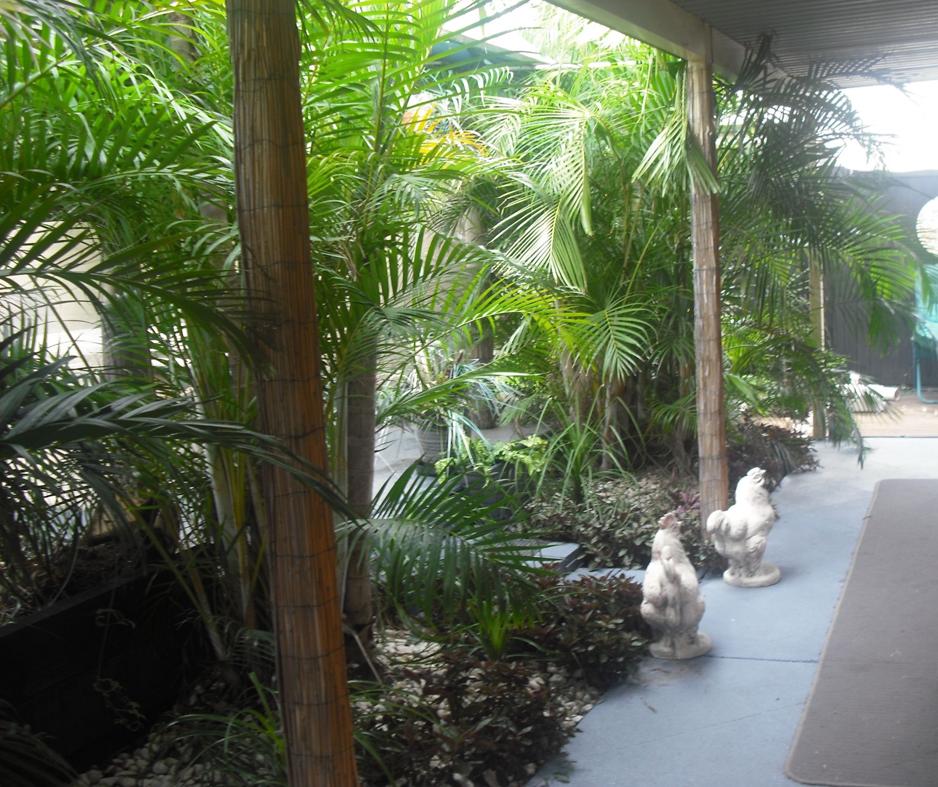 Lots of power points . Long, all concrete driveway from street to back garages . No driving over grass .