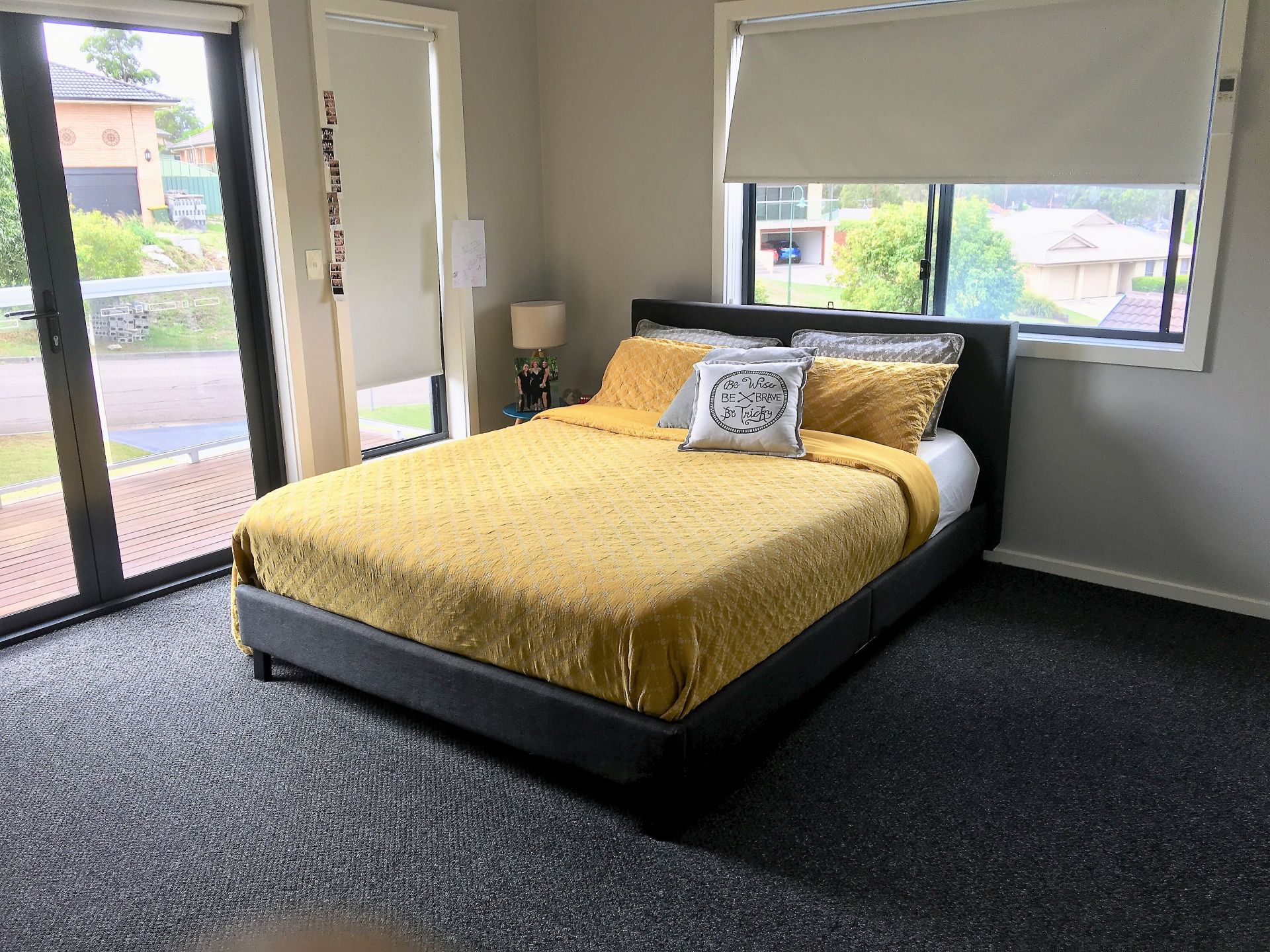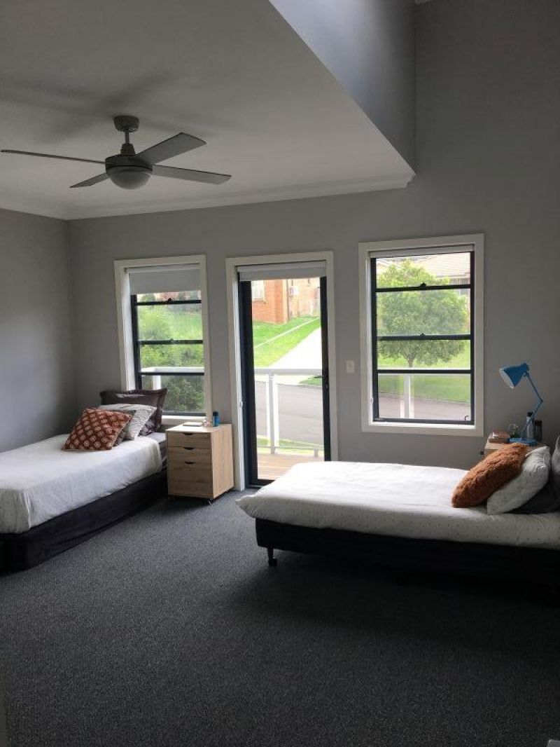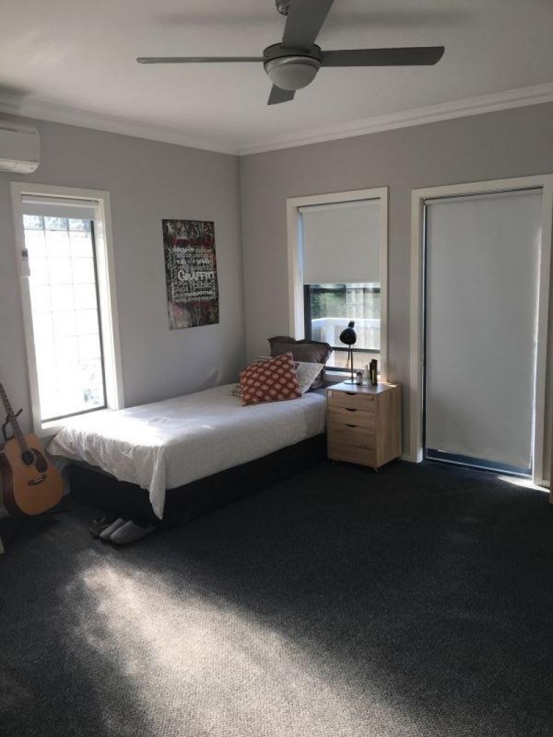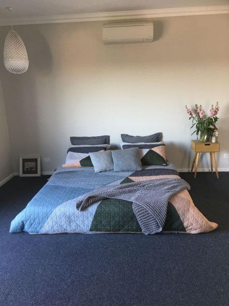 Up to the master suite- a big king size room with own private deck awaits you. Views to Mt Sugarloaf and beyond. A walk-through robe leads to a luxurious ensuite containing a free standing bath with enough space and privacy to soak away the blues.